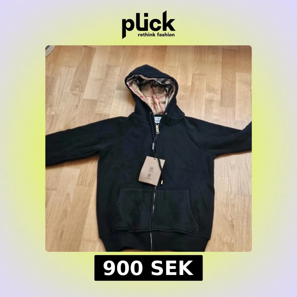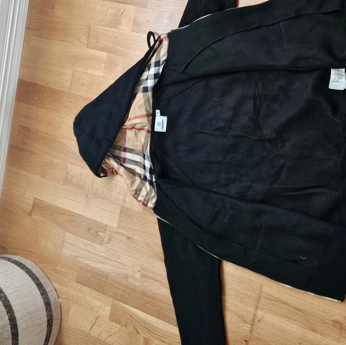 Pris kan diskuteras kan lösa dunder priser. Svart hoodiejacka från Burberry med klassiskt rutigt foder i huvan. Jackan har dragkedja framtill, snörning i huvan och två stora fickor. Perfekt för dig som vill ha en stilren och lyxig streetlook med ikoniska Burberry-detaljer.