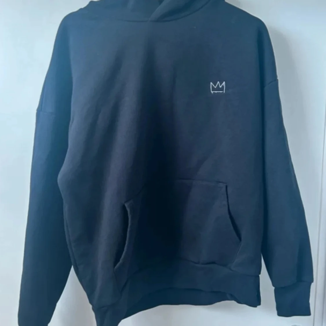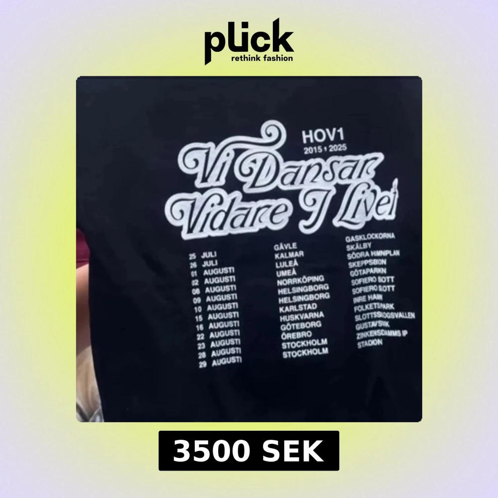 Svart hoodie från Hov1 med vit kronlogga framtill och stort turnétryck på ryggen med texten 'Vi Dansar Vidare I Livet'. Hoodien har huva och magficka. Säljer helt ny pga har inte kommit till användning