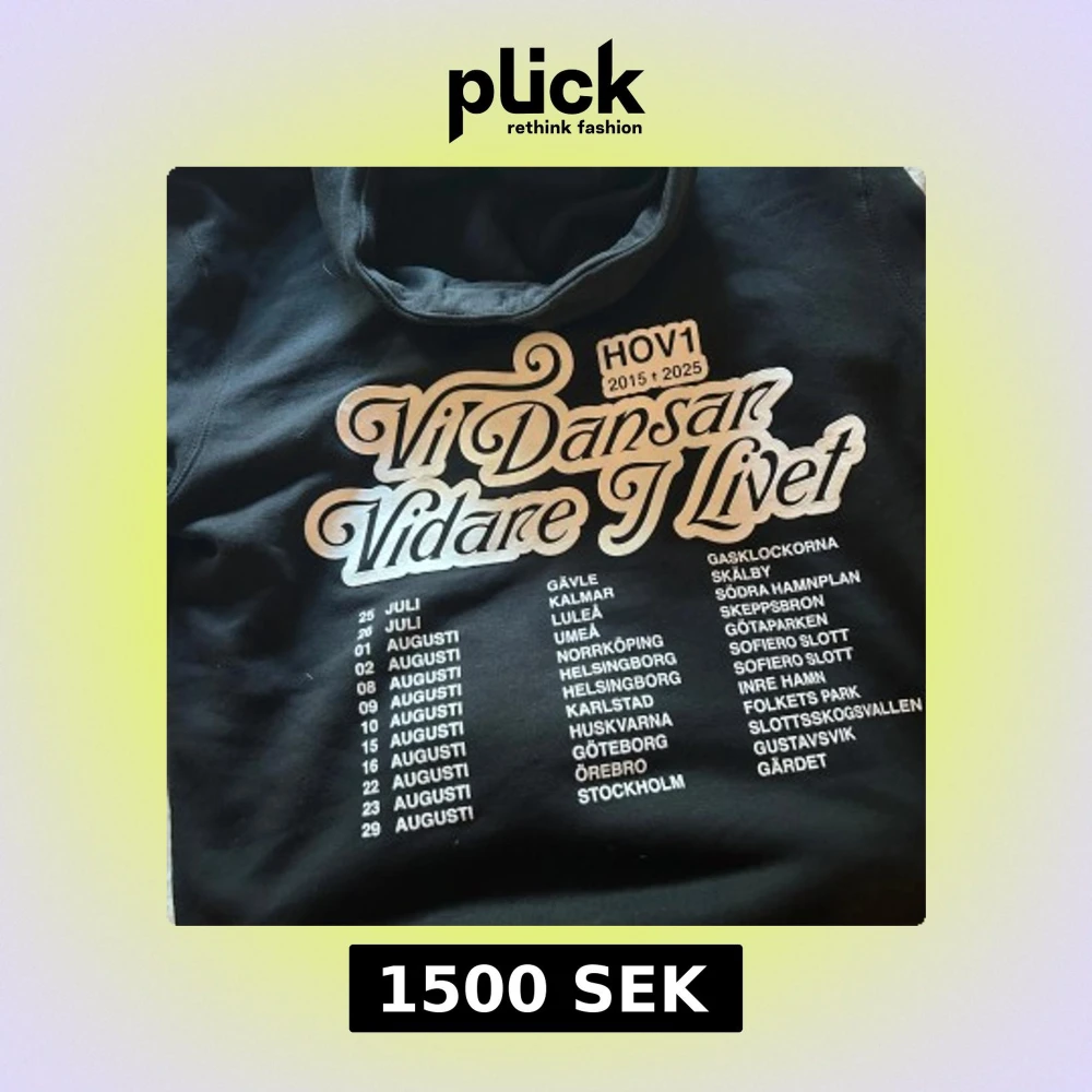 Svart hoodie från Hov1 med broderad krona på bröstet och stort turnétryck på ryggen. Storlek S. Köpt på sista spelningen, Gärdet. Som ny.🎉💐🩷