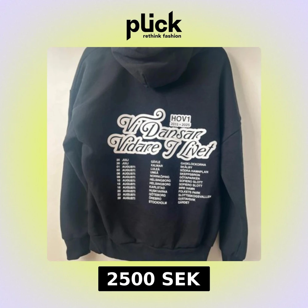 Svart hoodie från Hov1 med stor vit turnétext på ryggen och liten kronlogga fram. Tröjan har huva och vit text där bak, helt ny, kan skicka mer bilder och pris kan diskuteras!!!