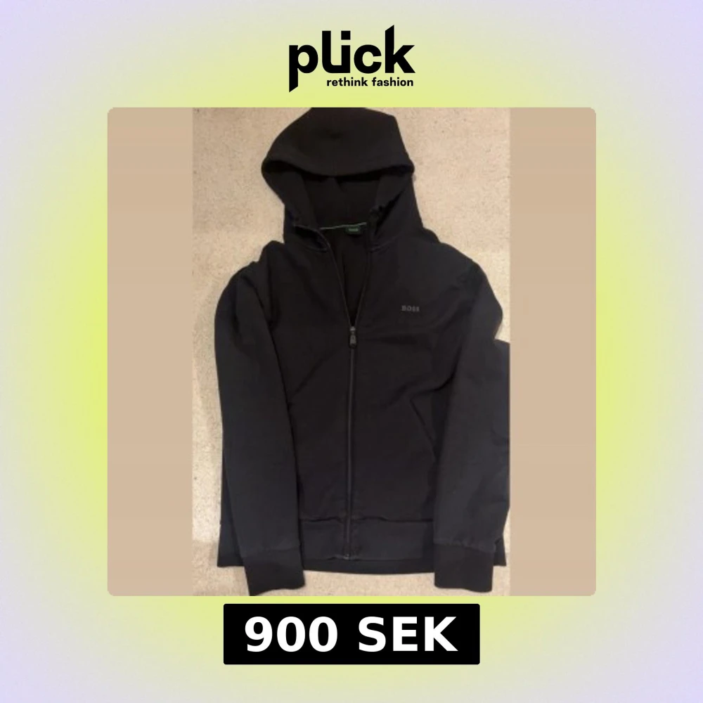 Svart hoodie från BOSS med logga på bröstet. Tröjan har huva, hel dragkedja. Perfekt för chill dagar eller när du vill ha en clean look. Storlek är L. Oanvänd, kvitto finns.