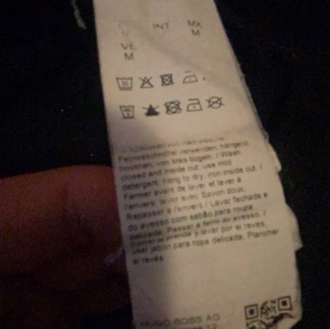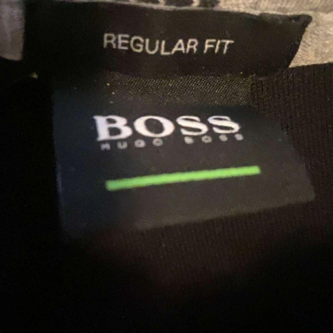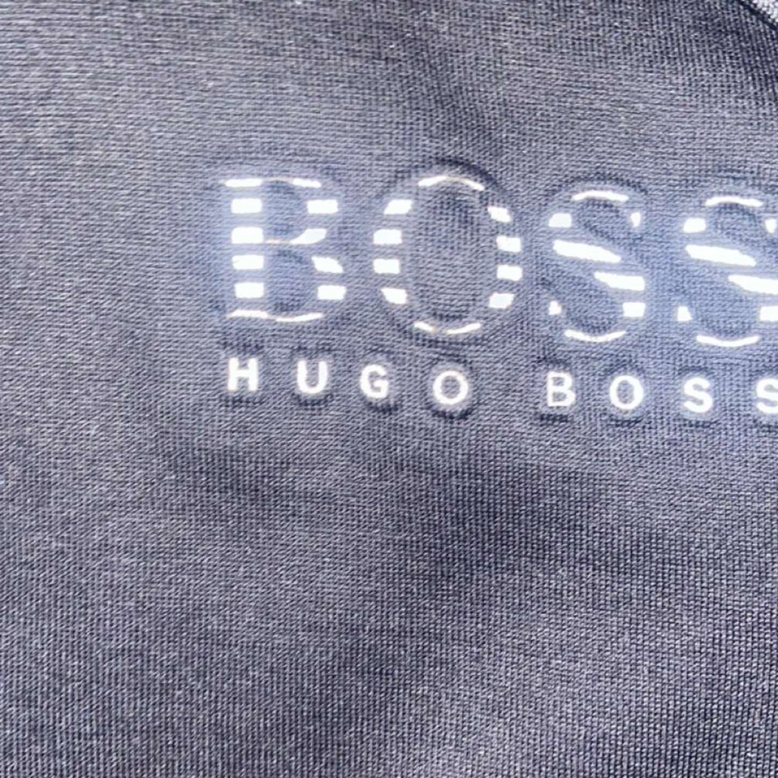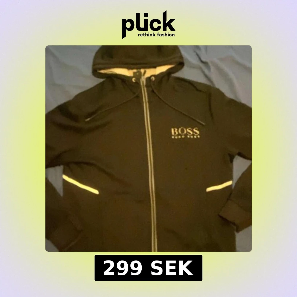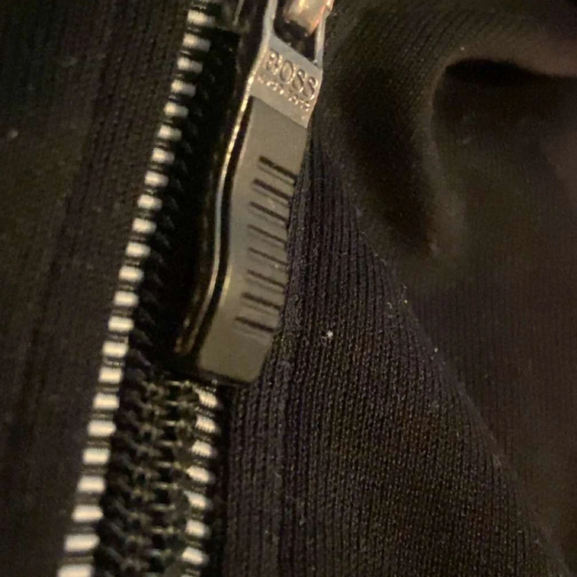 Svart Hugo boss hoodie med defekter på armbågarna och i luvvan