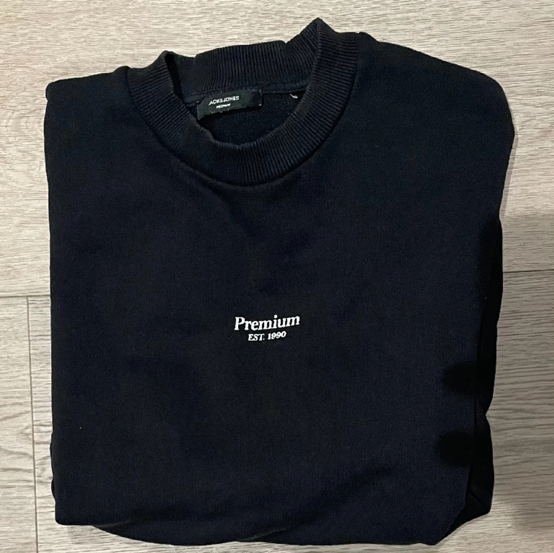 Säljer denna stilrena svarta crewneck ifrån Jack & Jones, i nyskick, då den inte har använts. Nypriset på en sådan här ligger på ca 600. Storleken är S i tröjan men passar även M