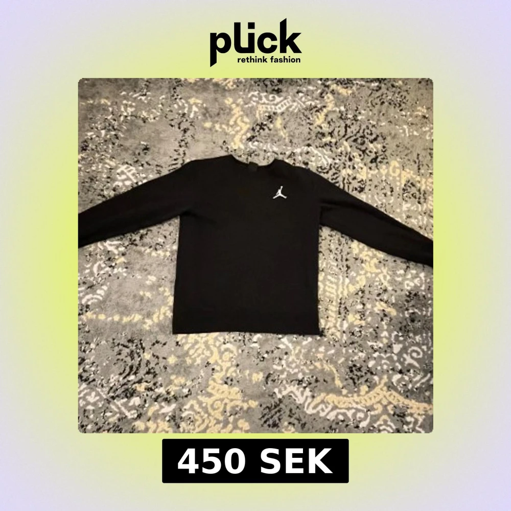 Svart sweatshirt från Jordan med klassisk Jumpman-logga broderad i vitt på bröstet. Tröjan har rund halsringning och långa ärmar. Tillverkad i mjuk bomullsblandning, perfekt för en sportig och avslappnad stil.