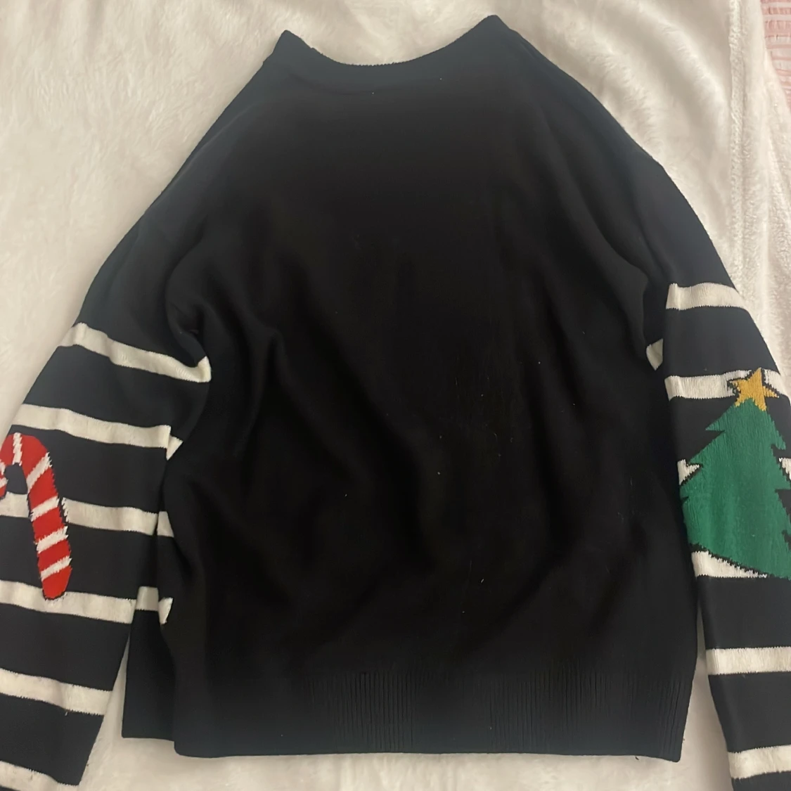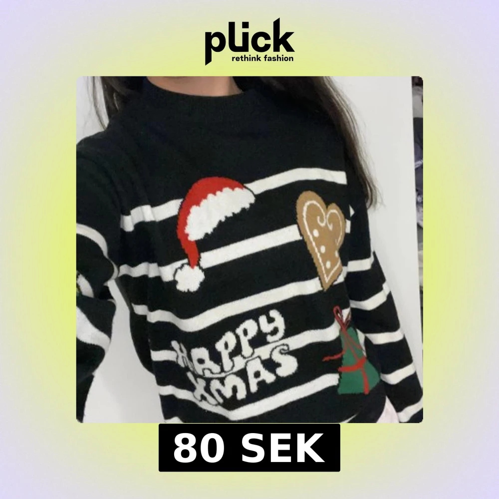Snygg svart jultröja från H&M med vita ränder och julmotiv. Långärmad och varm som passar kalla dagar.