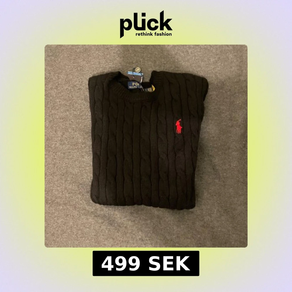 Svart kabelstickad tröja från Polo Ralph Lauren med klassisk röd logobroderi på bröstet. Rund hals och ribbade muddar vid ärmslut och nederkant. Perfekt för dig som gillar stilrena och tidlösa plagg med snygga detaljer.