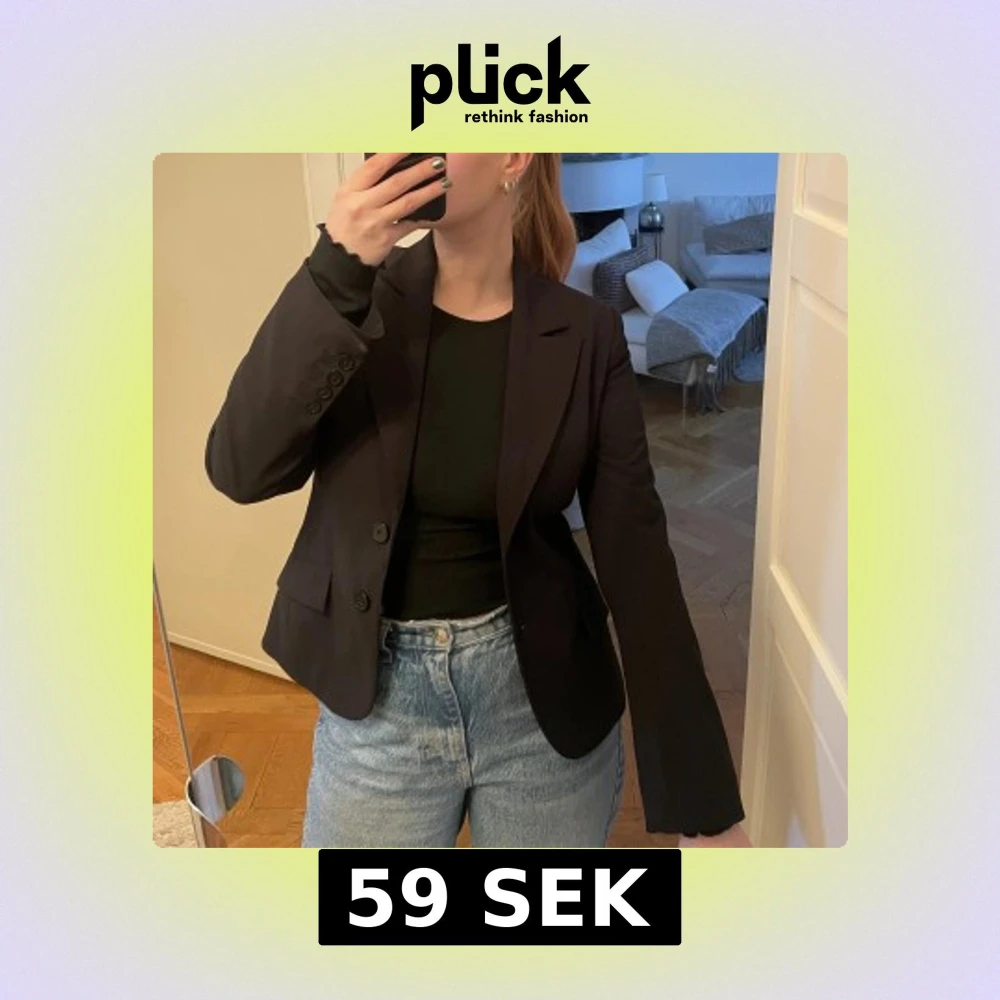 En helt ”vanlig” svart kavaj som säljs då den är för liten. Annars är den o jättebra skick! Storlek 38 men sitter mer som en 36🤗