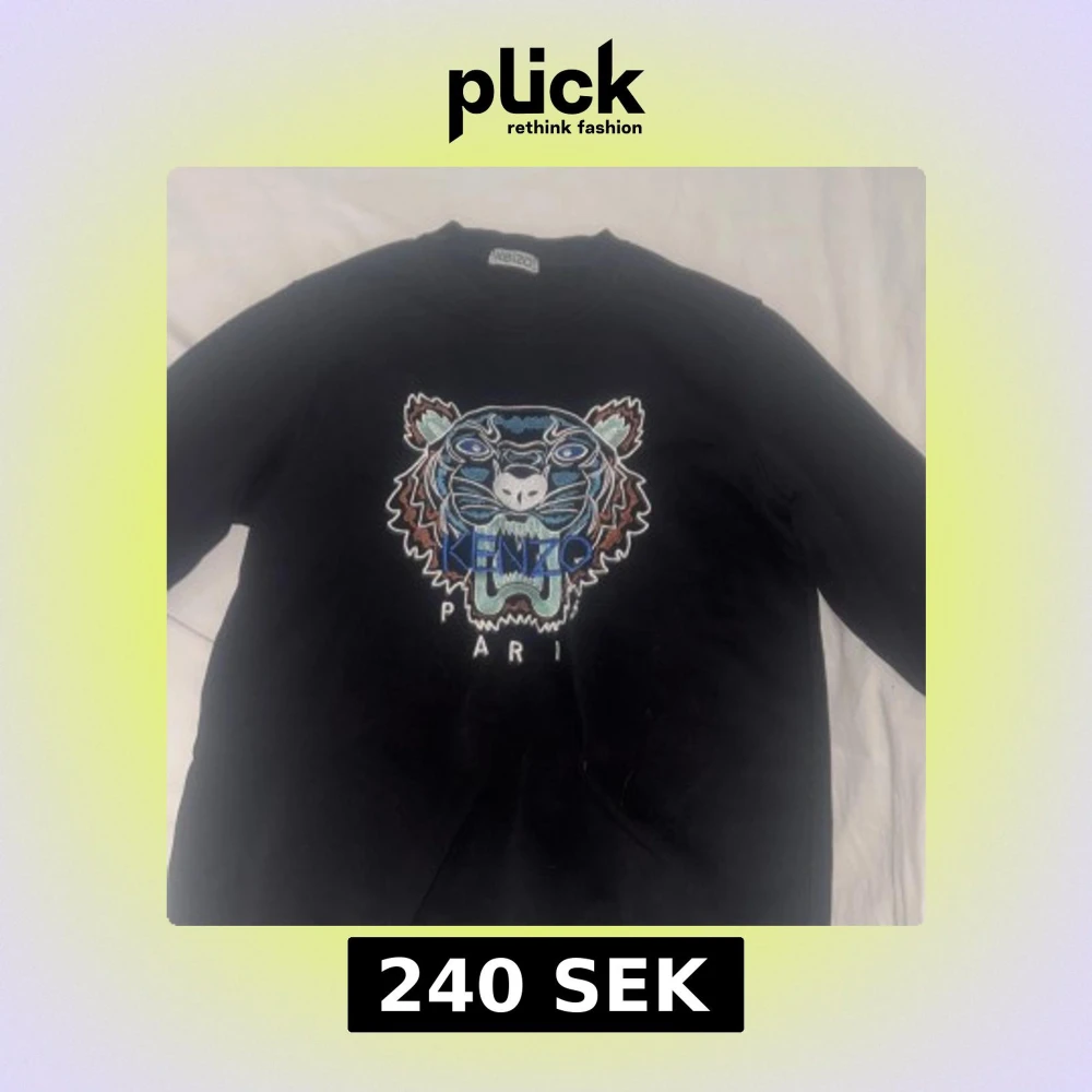 Svart tröja från Kenzo med ikonisk broderad tiger i blått, vitt och brunt framtill. Klassisk rund hals och långa ärmar. Perfekt statement piece för dig som vill sticka ut med en snygg logga och cool design. Orginal priser är 1100!❤️ inga skador,