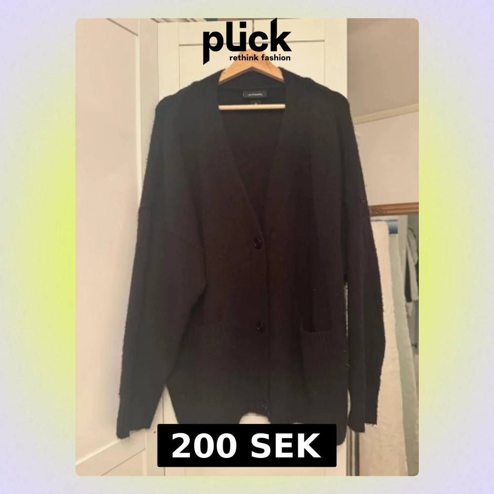Svart kofta med svarta knappar. Den är från Monki i storlek M men sitter väldigt oversize😇