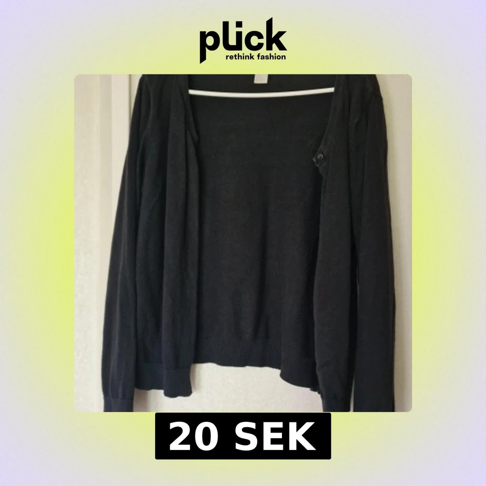 En svart, klassisk kofta från H&M Basic i storlek M. Perfekt att slänga över en t-shirt eller linne. Tunn och mjuk, passar året runt. Den är något tvättpåverkad i färgen vid kanterna men det var svårt att få med på bild