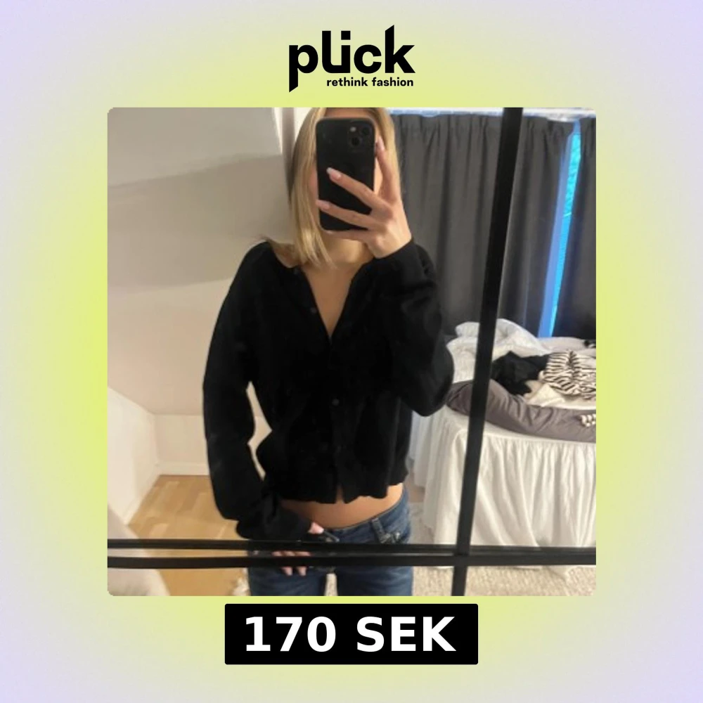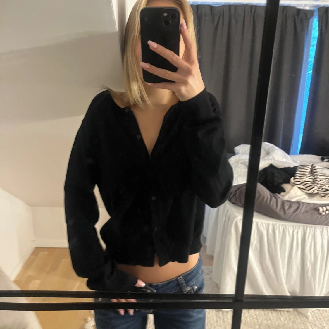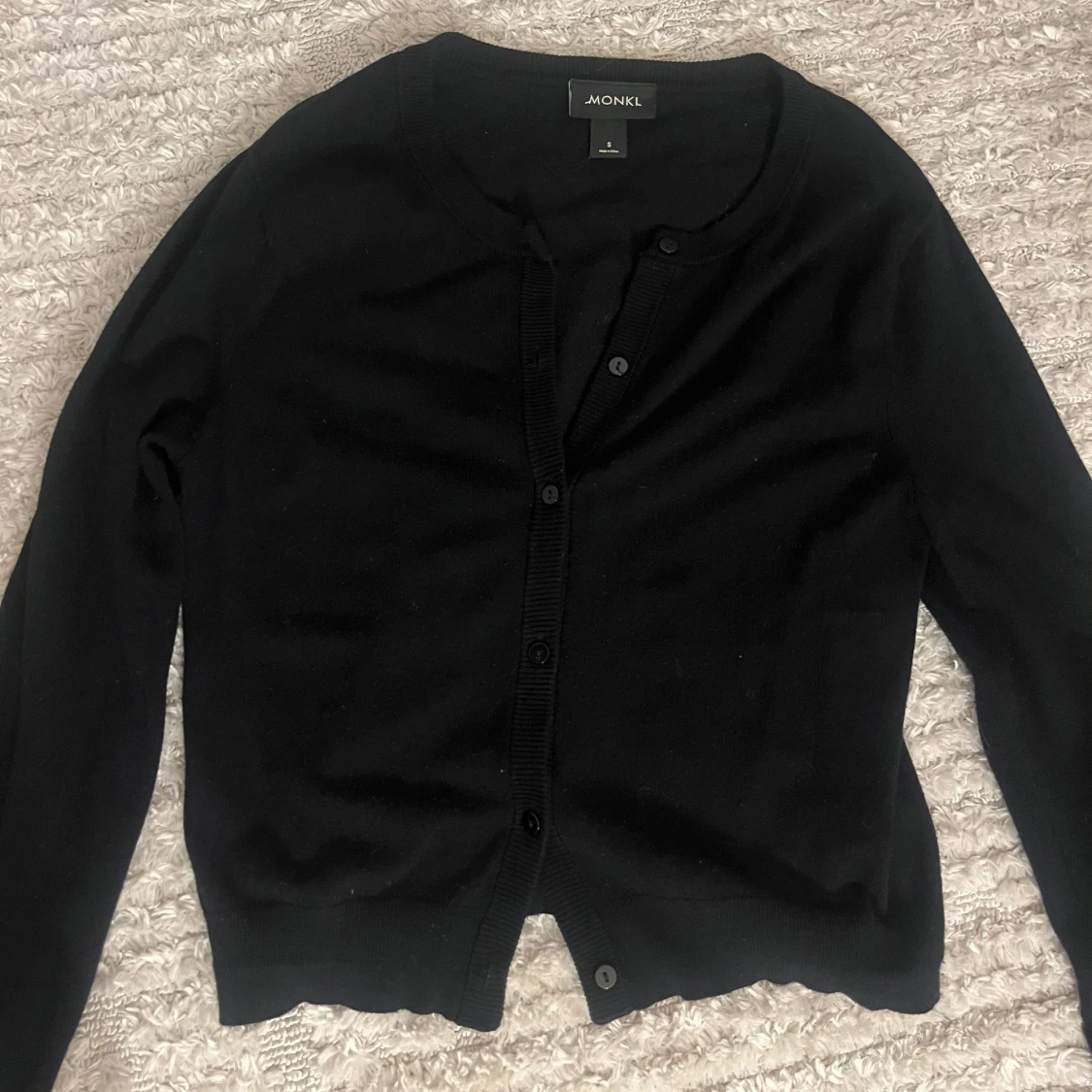 En svart, klassisk kofta från Monki med rund halsringning och knappar framtill. Modellen är lite croppad och har långa ärmar! Passar till allt 💗