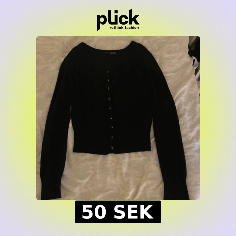 Säljer en stilren svart kofta från Uniqlo med knappar framtill. Den har långa ärmar och en klassisk passform som passar perfekt till olika outfits. Perfekt för lager-på-lager-stil!