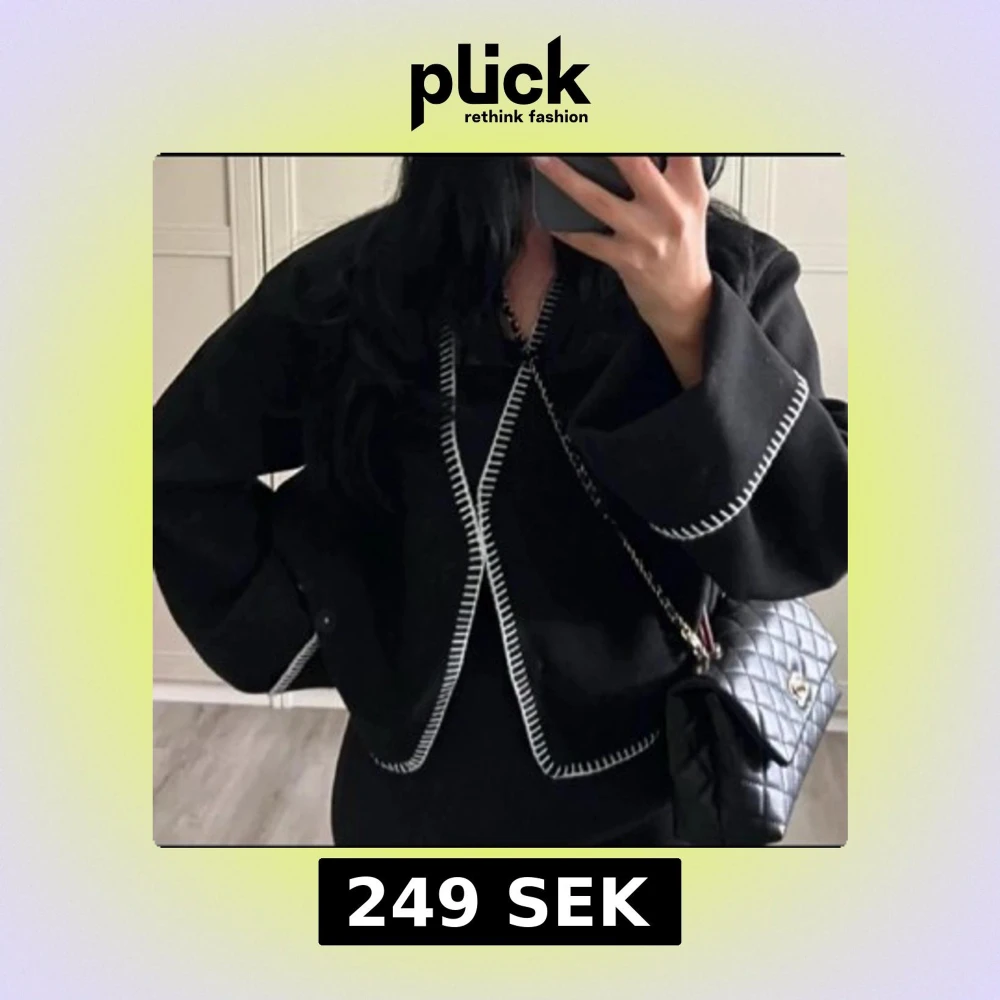 Superfin svart kofta med vita detaljer från Gina trot. Bara använt ett fåtal gånger så i superfint skick