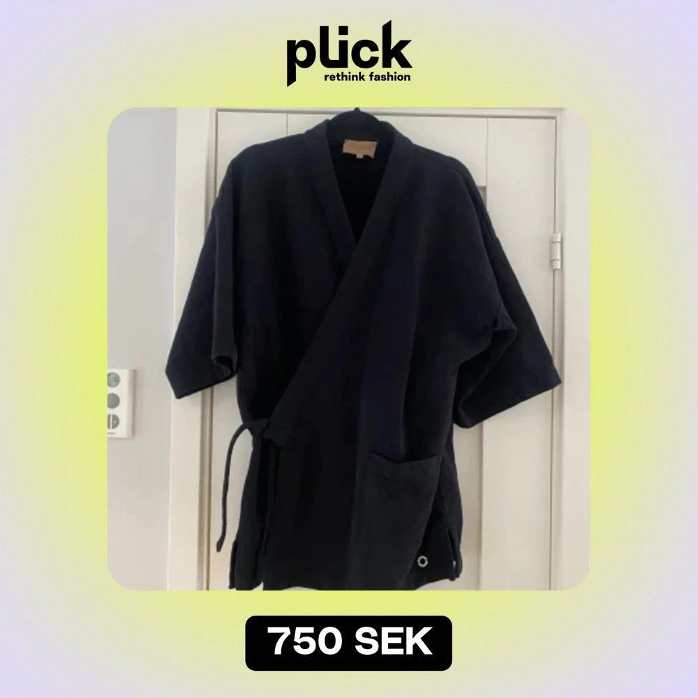 Svart kofta i kimono modell i sweatshirt material i strl M från Rue de Tokyo i nyskick
