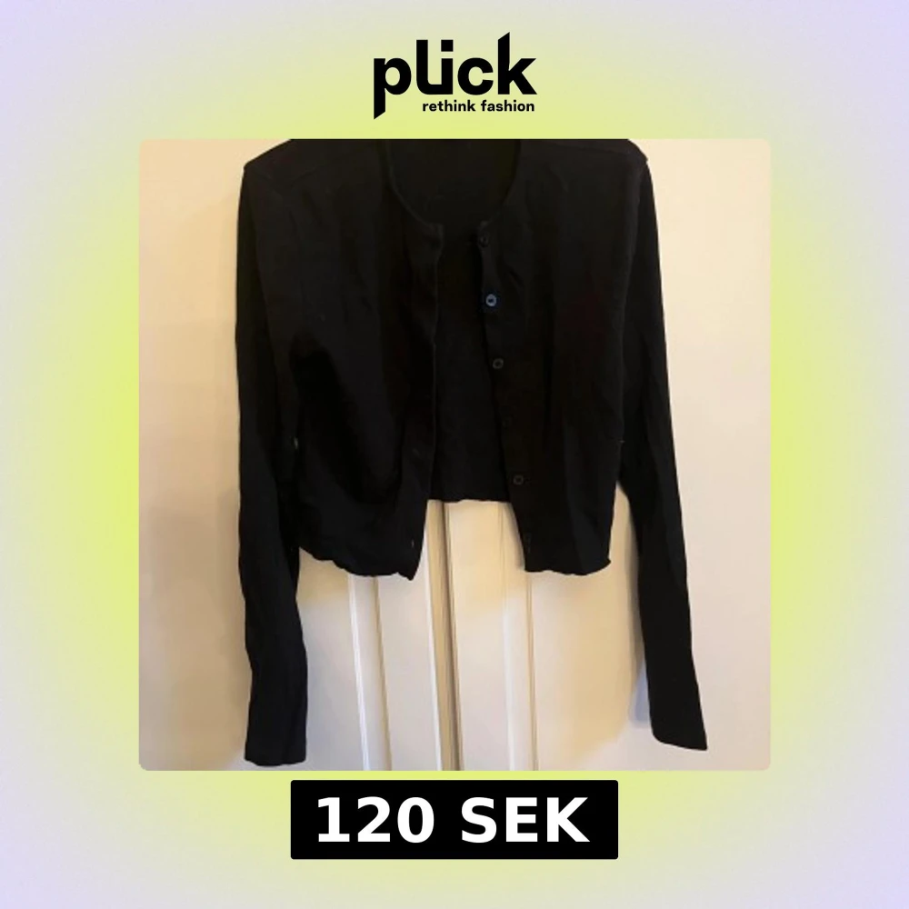 Svart kortare kofta från hm med rund halsringning och knäppning framtill. Koftan är croppad och har långa ärmar. Tillverkad i mjuk bomull som känns skön mot huden. Perfekt för dig som gillar en enkel och stilren look. Lite kortare än vanliga koftor/tröjor.