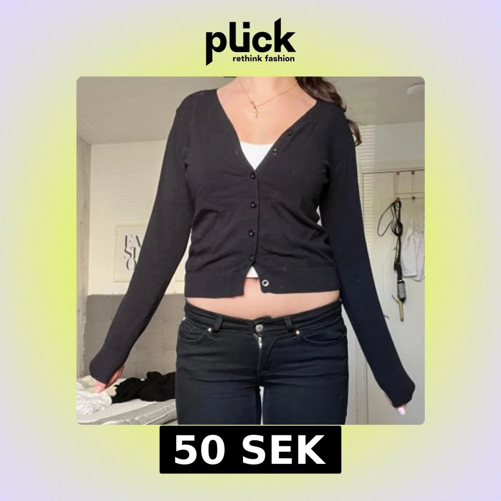 Svart kofta med v-ringning och knappar framtill. Långärmad och i mjukt, tunt material som känns skönt mot huden💕