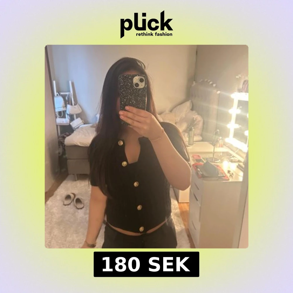 Snygg svart kofta med korta ärmar och dekorativa guldknappar framtill. Perfekt för att lägga till en touch av elegans till din outfit. Pris kan diskuteras💞