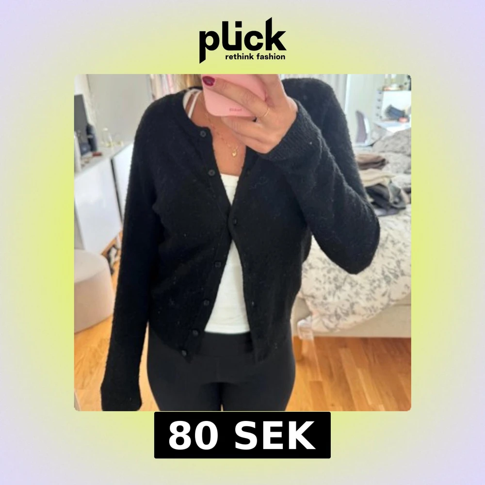 Svart, klassisk kofta med rund hals och knäppning framtill. Långärmad och ribbad vid muddar och hals. Enkel och stilren, passar till allt.