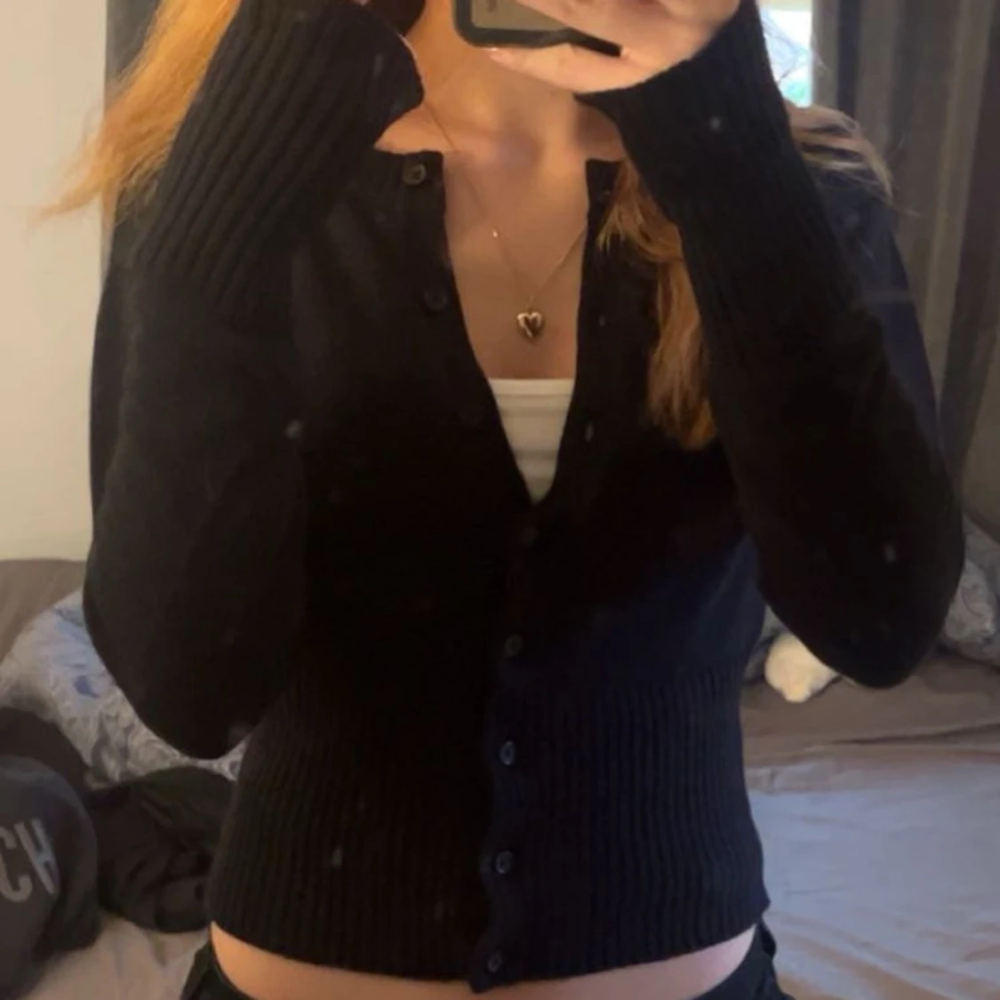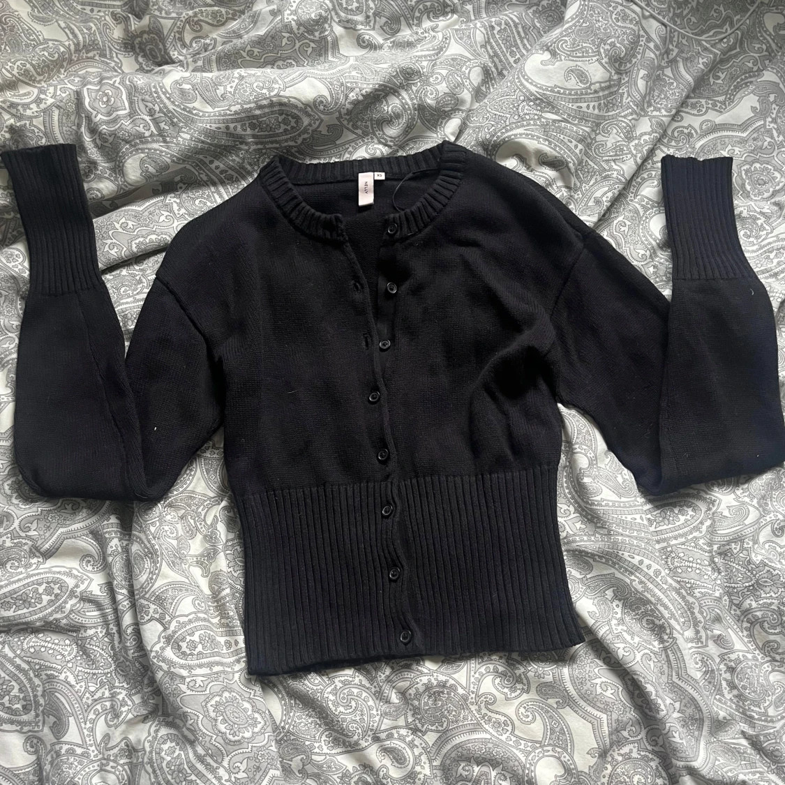 Säljer en stilren svart kofta med knappar framtill. Koftan har långa ärmar och ribbade detaljer vid ärmslut och nederkant. Perfekt för en enkel och snygg look.💕💕