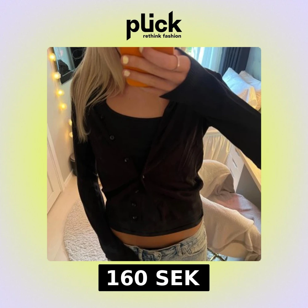 Säljer en svart, figurnära kofta med långa ärmar och knappar framtill ifrån H&M. Enkel och stilren modell som passar perfekt till jeans eller kjol. Koftan är i ett mjukt material och har en klassisk look.