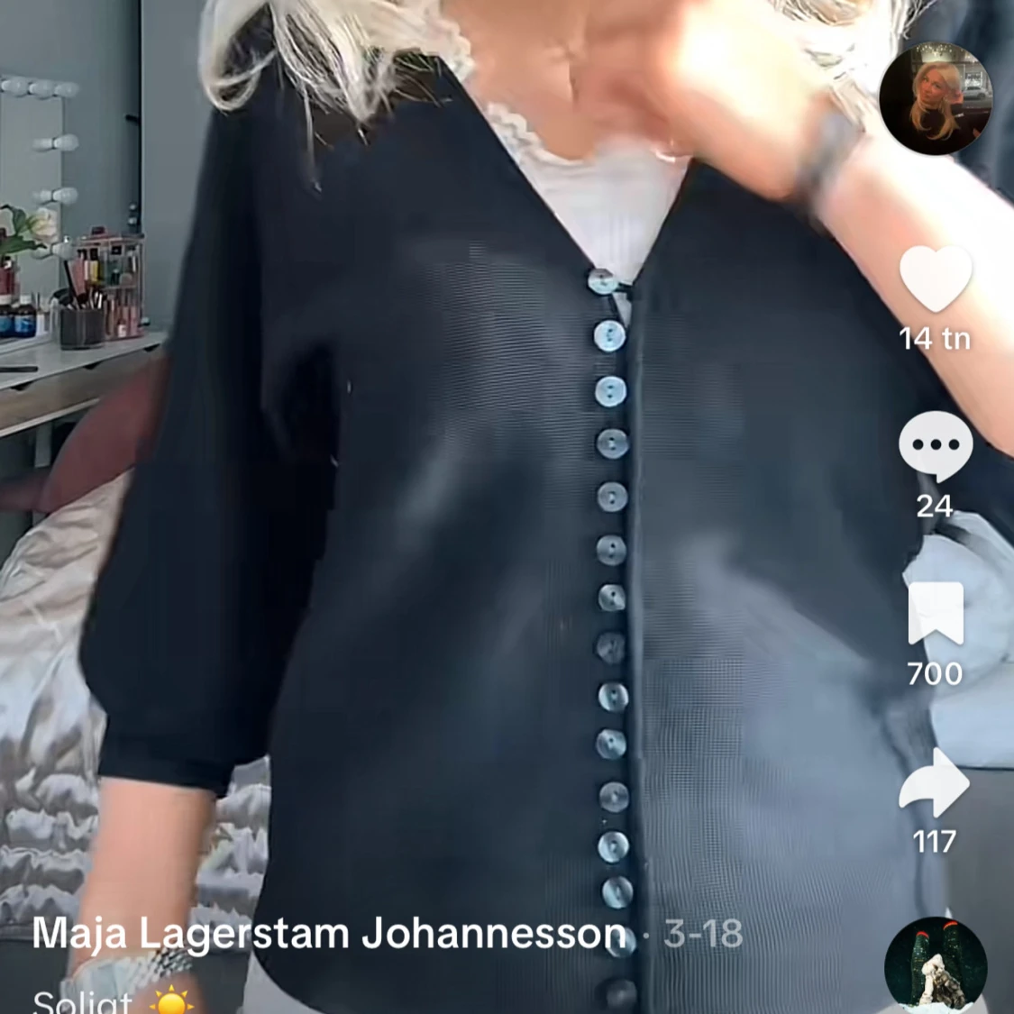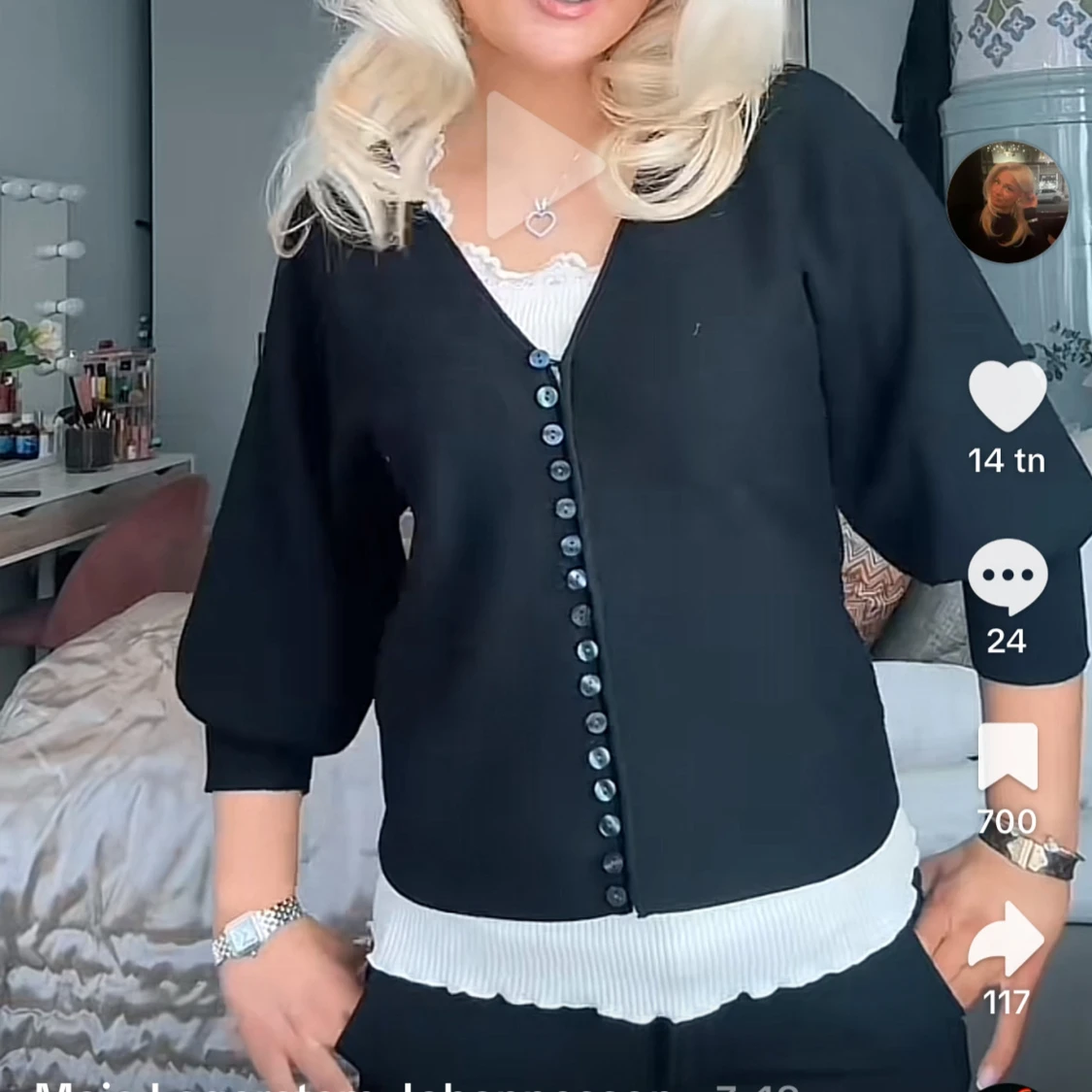 Svart kofta med knappar och v-ringning