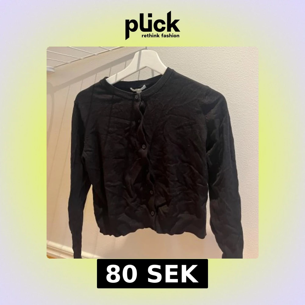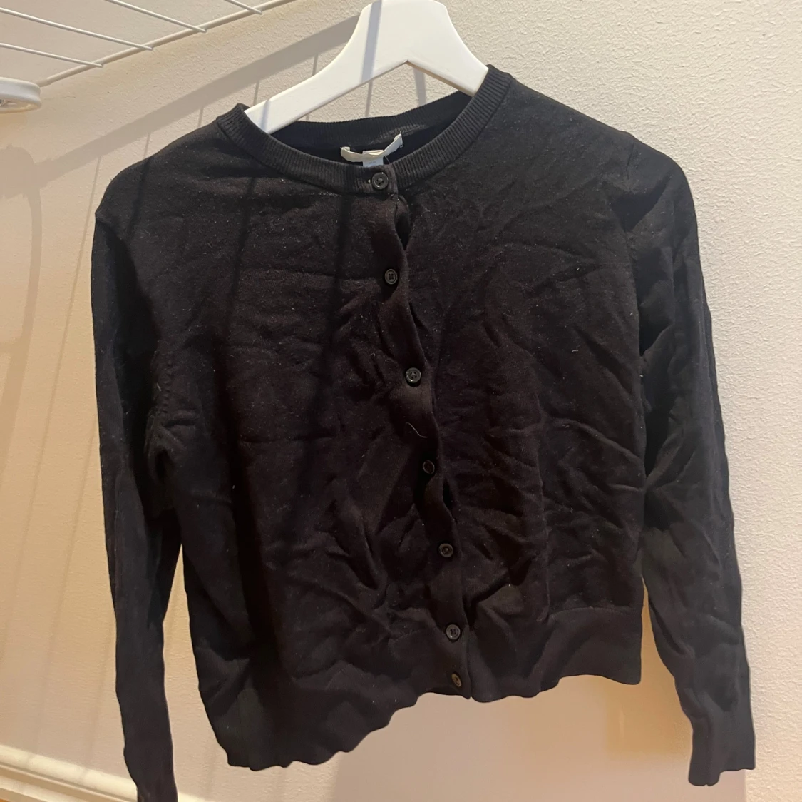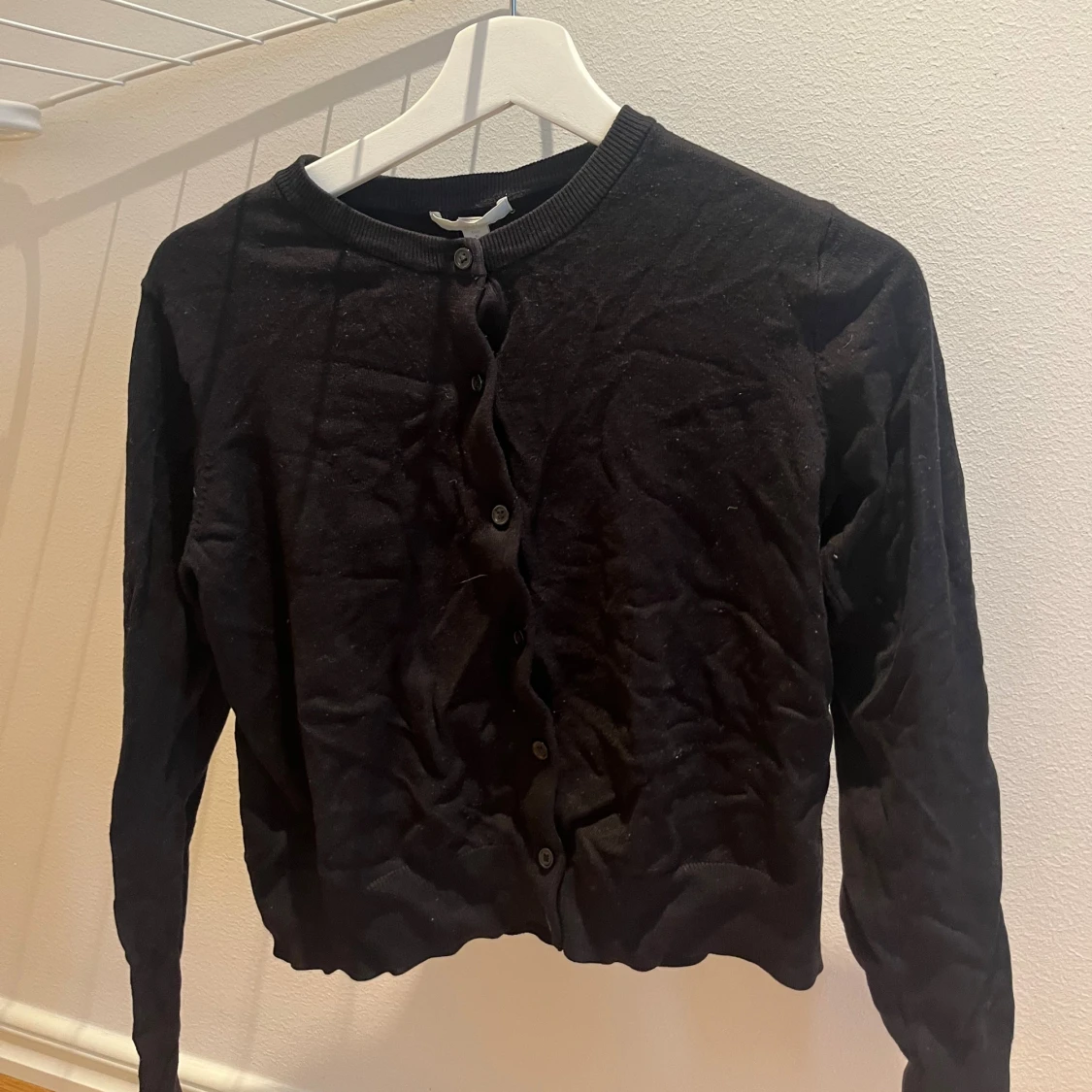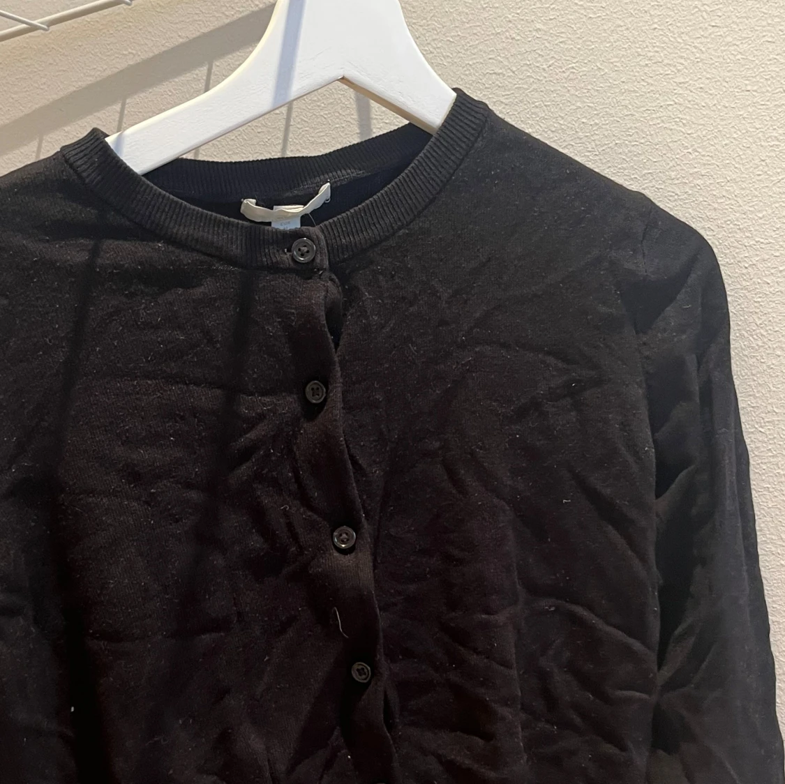 En klassisk svart kofta med rund hals och knäppning framtill. Långärmad och i mjukt material, perfekt att slänga över en t-shirt eller linne. Enkel och stilren design som funkar till det mesta.