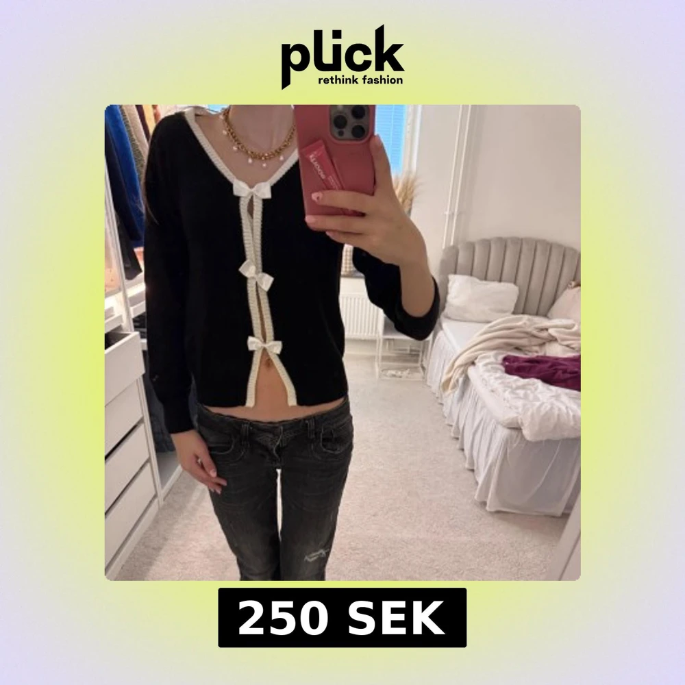 Säljer en svart kofta med vita detaljer och tre söta rosetter framtill. SUPER söt 🎀🎀🎀🎀