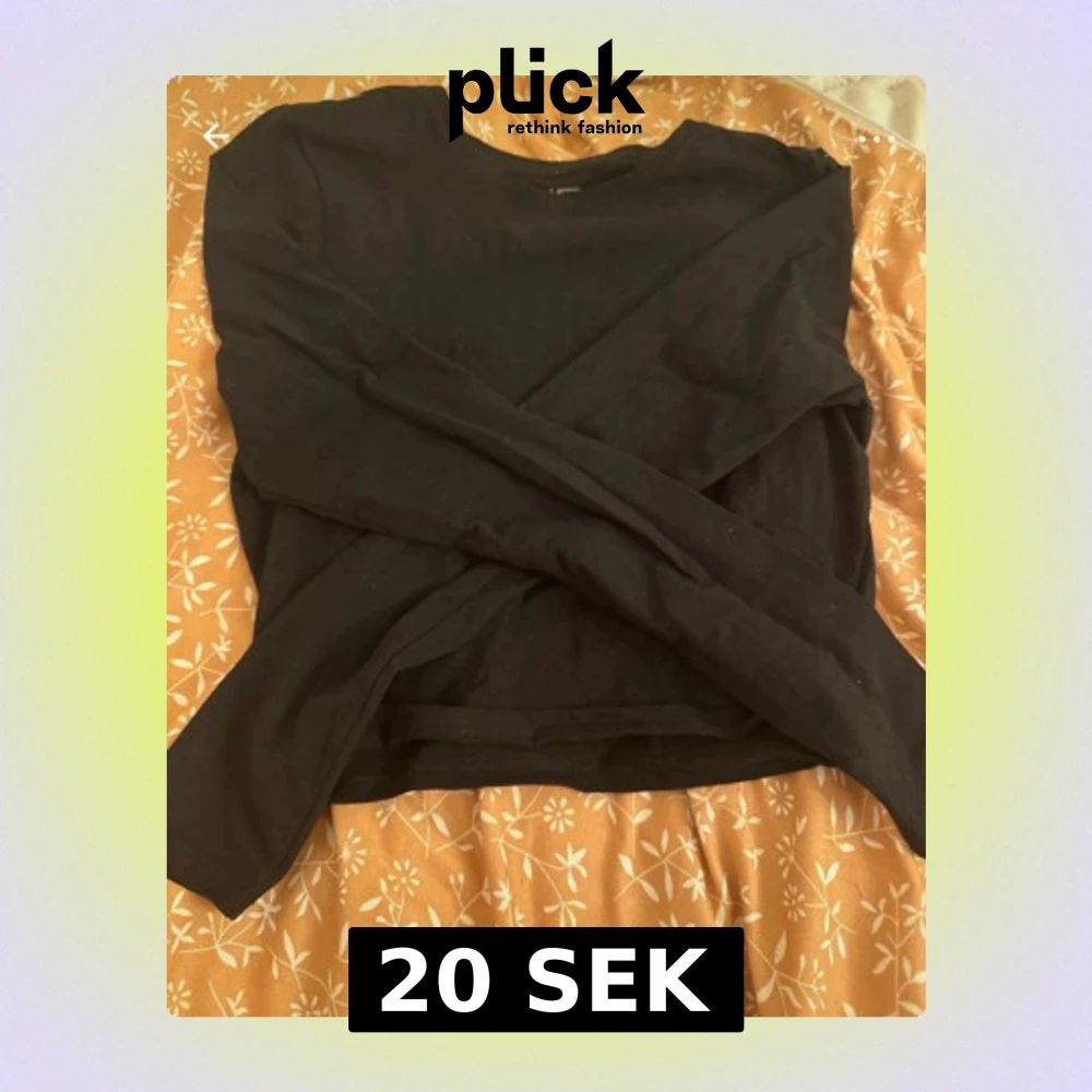 En enkel svart långärmad tröja med rund hals. Perfekt att ha som basplagg och funkar till många olika stilar. Materialet känns mjukt och lätt, troligen bomull. Snygg att bära både till jeans och kjol.