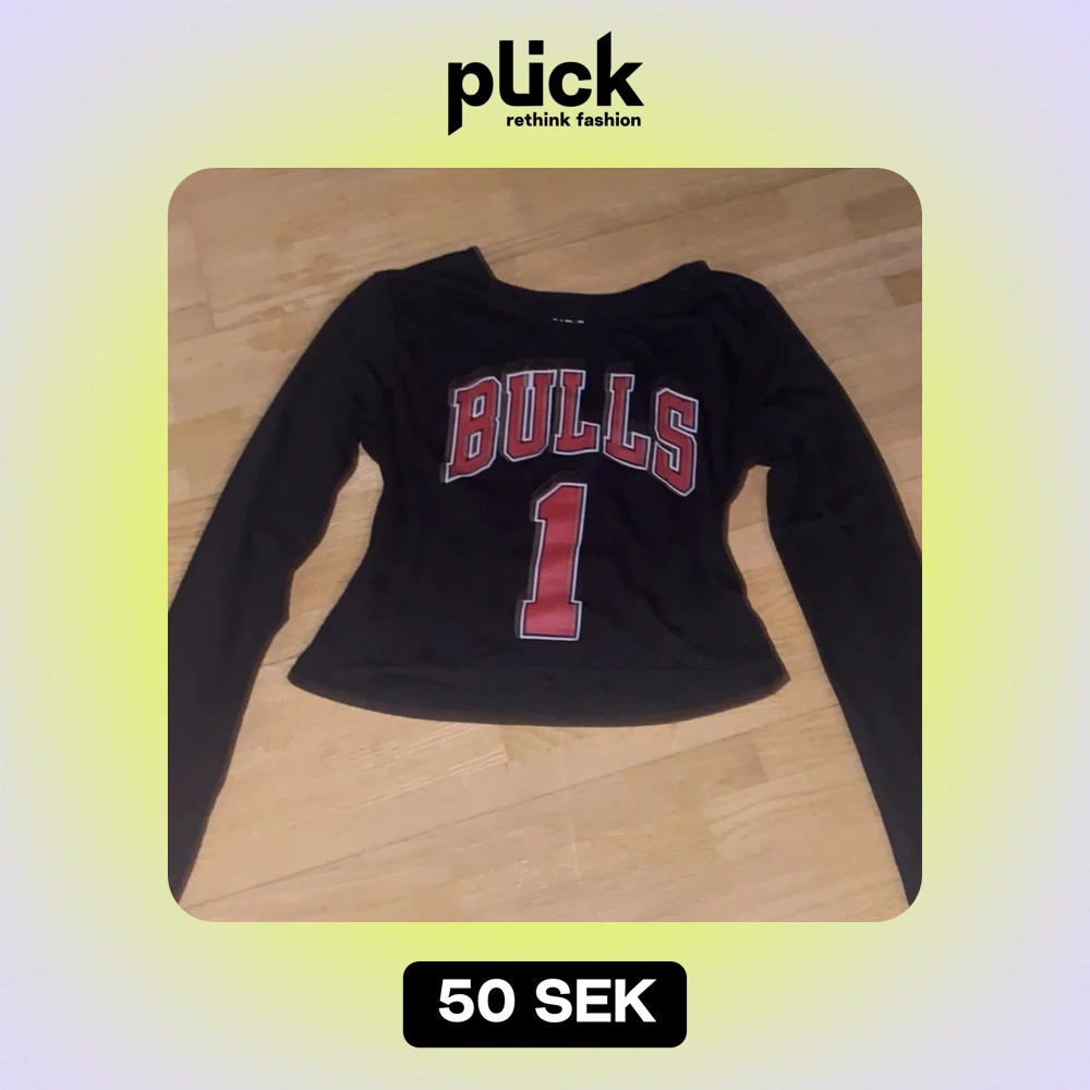 Cool svart långärmad tröja från BNDS med 'BULLS' och siffran '1' i rött på framsidan. Perfekt för en avslappnad stil eller sportiga tillfällen. Tröjan är i ett mjukt material och har en croppad passform. Passar perfekt till jeans eller kjol för en trendig look. Tröjan är one size men skulle säga den passar allt från XS-tajt M