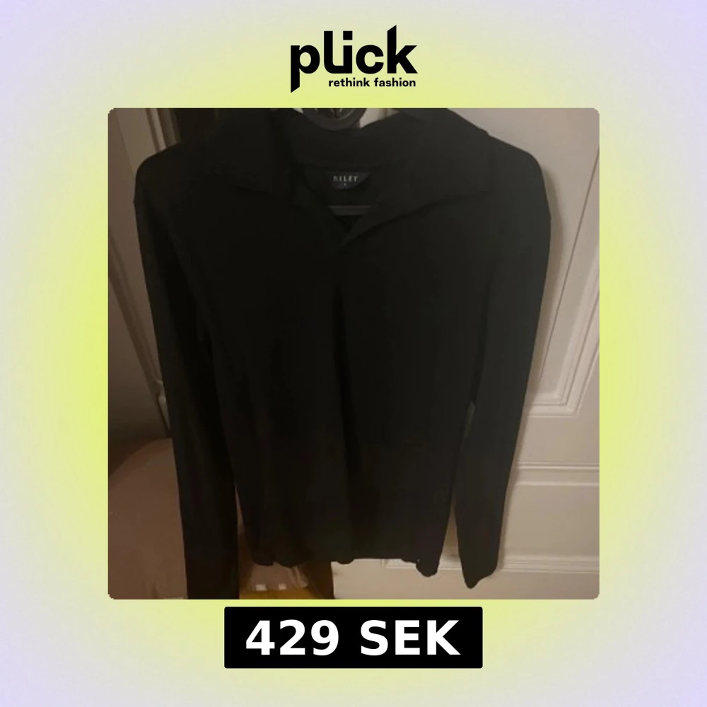 Säljer en stilren svart långärmad pikétröja från Riley. Perfekt för en minimalistisk look med en klassisk krage. Passar bra till både vardag och mer uppklädda tillfällen. Skick:9/10!!! Använd 2 gånger och aldrig mer inga defekter någonstans