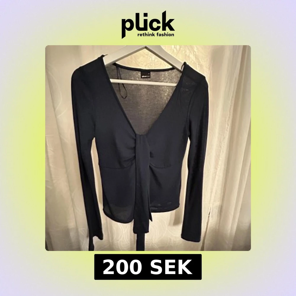 svart långärmad topp från Gina Tricot med knytning framtill. Toppen har en djup v-ringning och är i ett mjukt material.