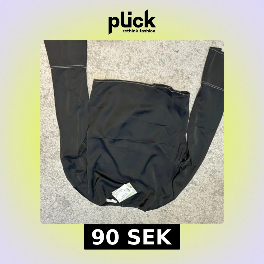 Säljer en svart långärmad topp från H&M med vit kontrastsöm längs ärmar och hals. Toppen har en enkel och stilren design, perfekt att matcha med olika outfits. Materialet känns mjukt och stretchigt.