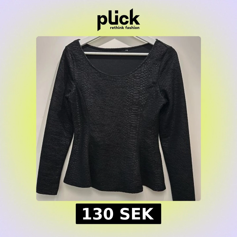 Snygg svart topp från H&M med långärmad design och texturerat mönster. Perfekt för en stilren look.