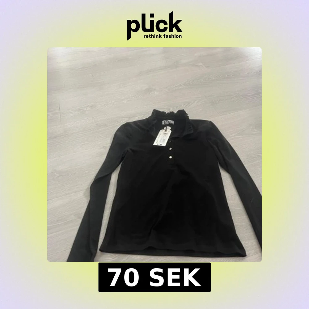Svart långärmad topp från Holly Whyte by Lindex i mjuk bomull. Snygg volangkrage och tre guldfärgade knappar. Har aldrig använt. Därför prislappen är på🌸