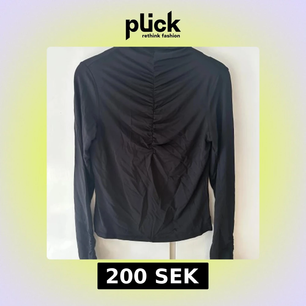 Svart långärmad topp från Indiska i stretchigt material. Snygg rynkdetalj längs ryggen och ärmarna ger en cool och modern look. Perfekt att styla med jeans eller kjol för en trendig outfit.