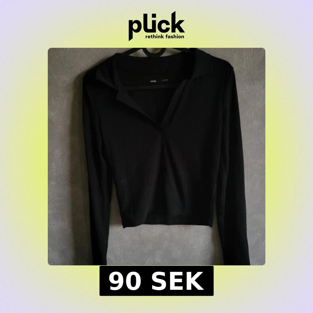 Säljer en stilren svart långärmad topp från Sinsay. Toppen har en djup v-ringning och är croppad, vilket ger en modern look. Perfekt för att matcha med höga jeans eller kjol. Hör av dig vid intresse!