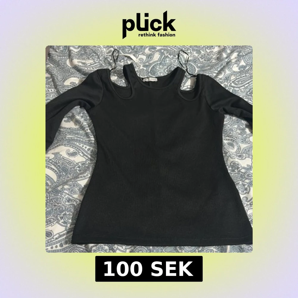 Svart långärmad topp från Zara med trendiga cut-outs vid axlarna och smala band som detalj. Tight passform och rund halsringning. Passar även en XS