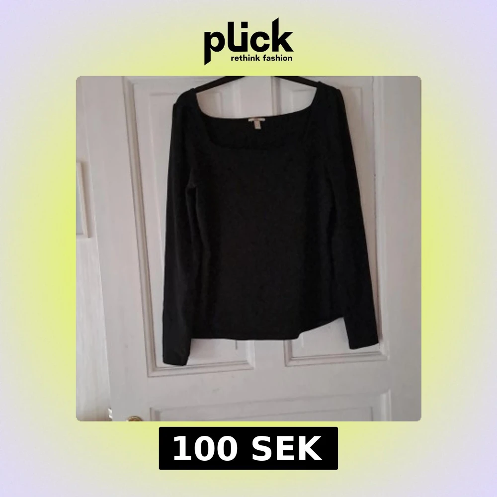 En stilren svart långärmad topp med fyrkantig ringning. Perfekt att matcha med jeans eller kjol för en clean look. Tunn och mjuk i materialet, passar dig som gillar minimalistisk stil.