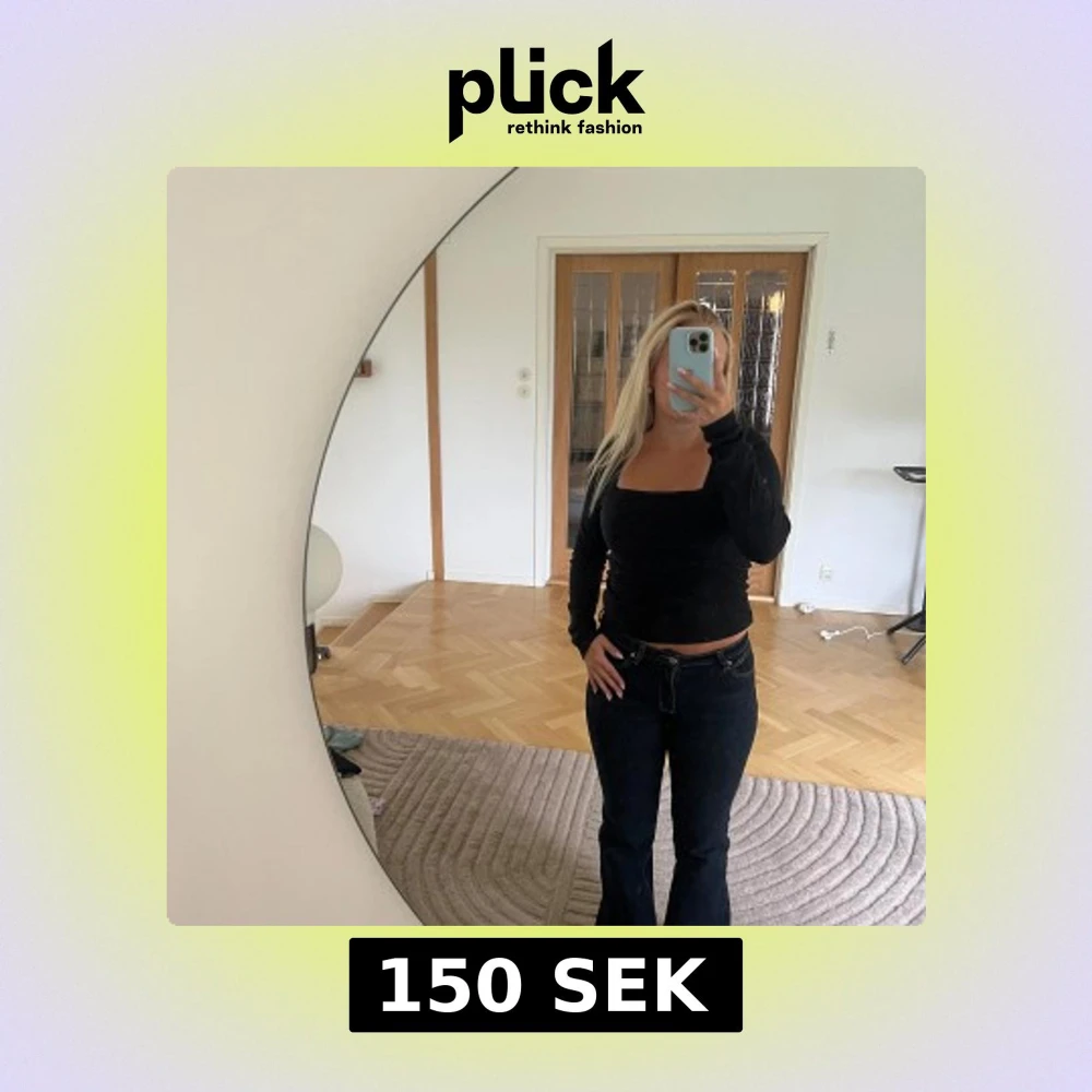 Säljer en svart långärmad topp med snygg fyrkantig ringning från USA. 🇺🇸