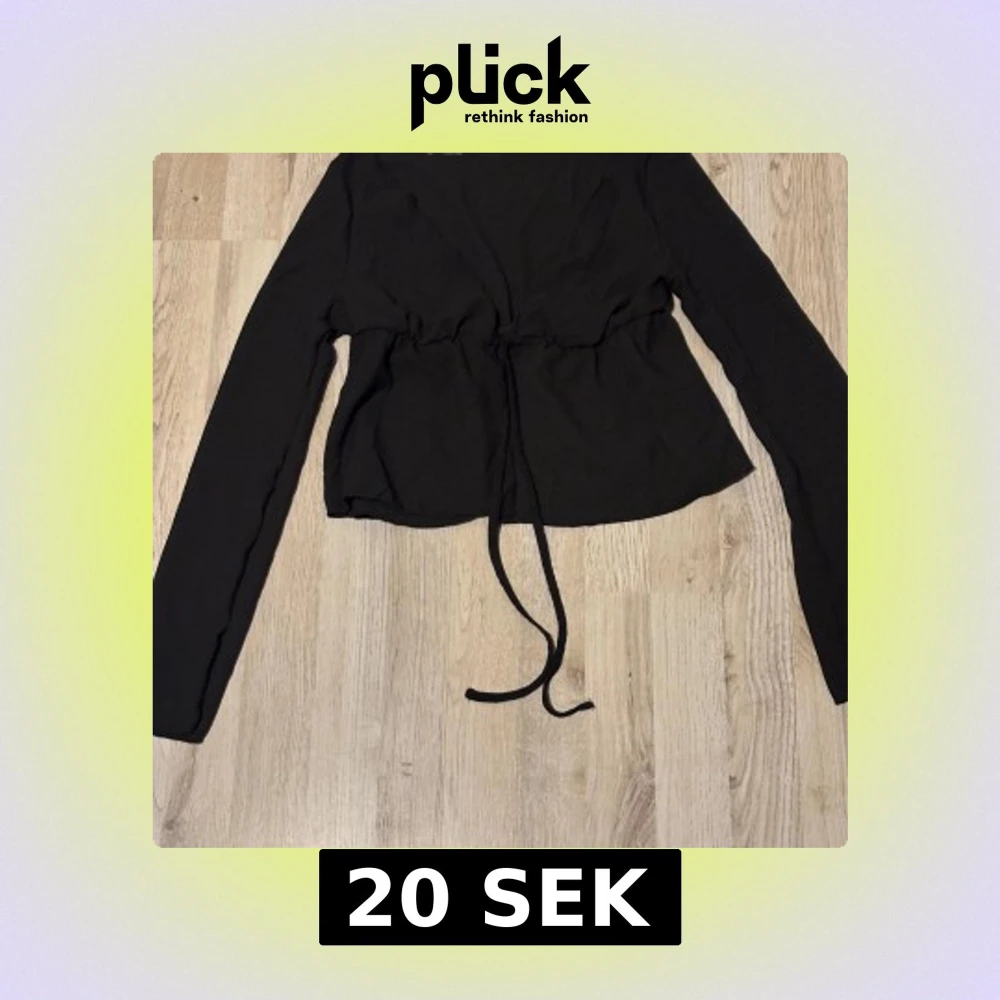 Snygg svart långärmad topp med knyt i midjan för en justerbar passform. Perfekt för en stilren look.