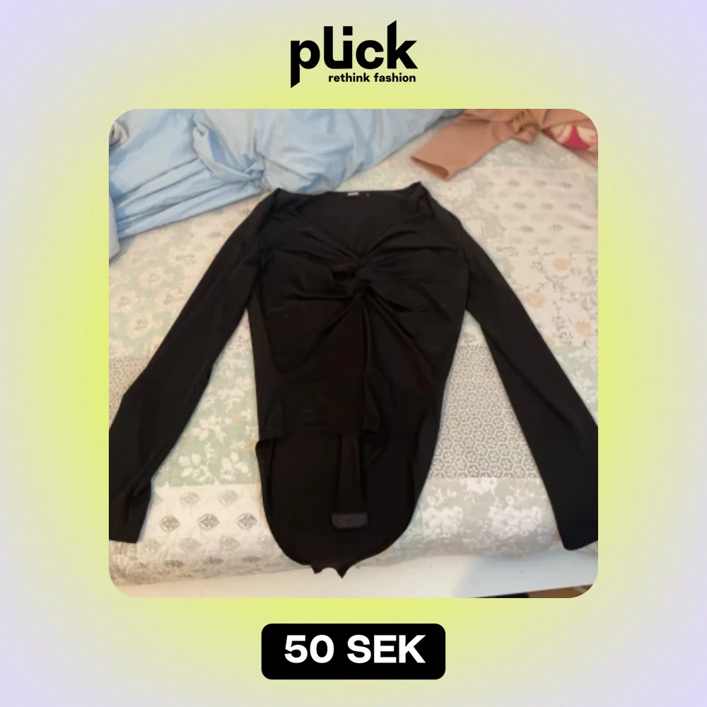 Säljer en elegant svart långärmad topp med en snygg knytdetalj framtill. Perfekt för både vardag och festliga tillfällen. Toppen har en tight passform och är gjord i ett mjukt och bekvämt material.