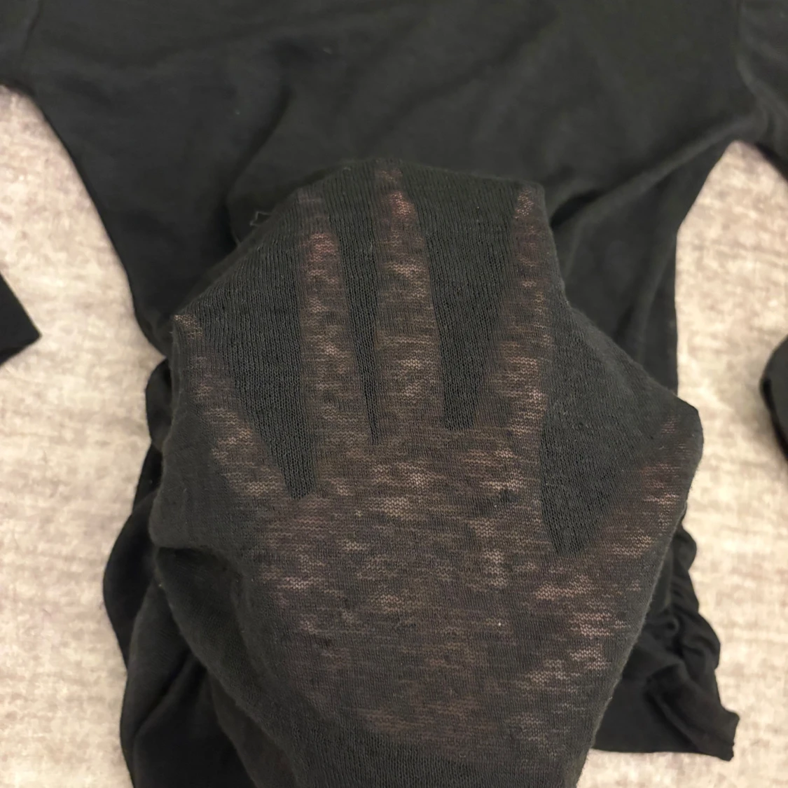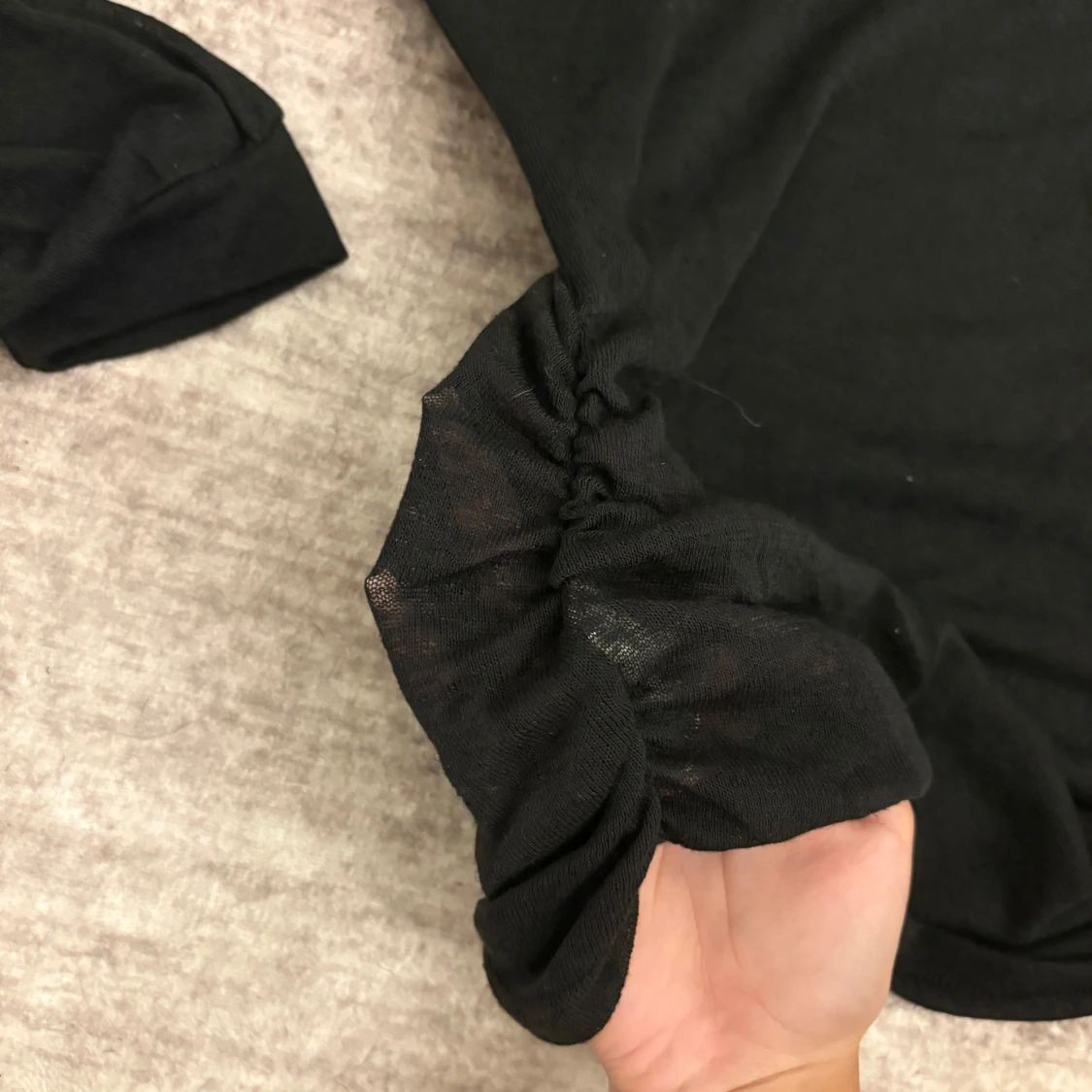 Svart långärmad topp i tunn, lätt transparent bomullsmix. Snygga rynkade detaljer i sidorna ger en cool och trendig look. Perfekt att styla med jeans eller kjol för en enkel men stilren outfit.