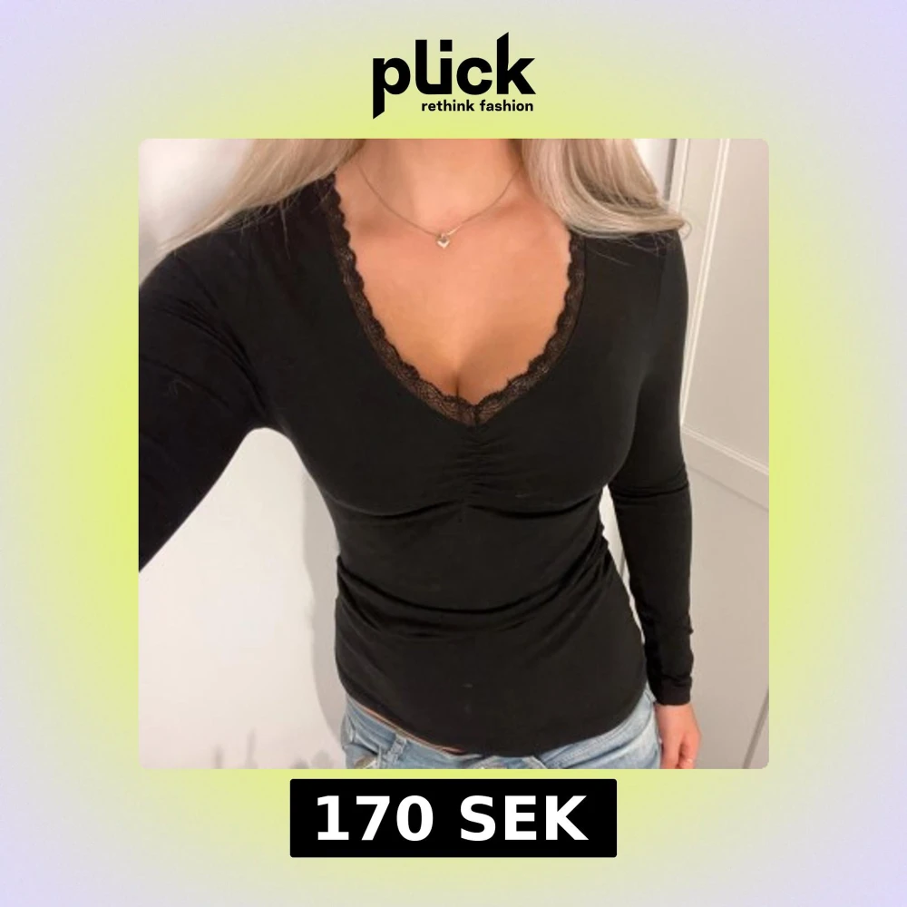 Svart långärmad topp i xs från Anna Field med djup v-ringning och spetskant runt halsen. Toppen har rynkdetalj framtill och är figurnära i modellen. Perfekt att styla med jeans eller kjol för en snygg look.