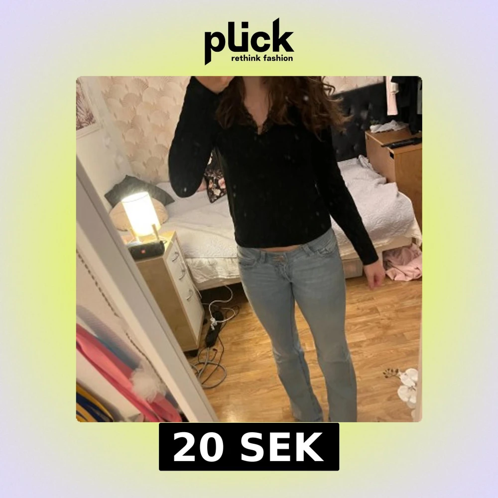 Svart långärmad topp från Gina Tricot med v-ringning och snygga spetsdetaljer runt halsen. Säljer billigt pga har klippt lite i v- ringningen.