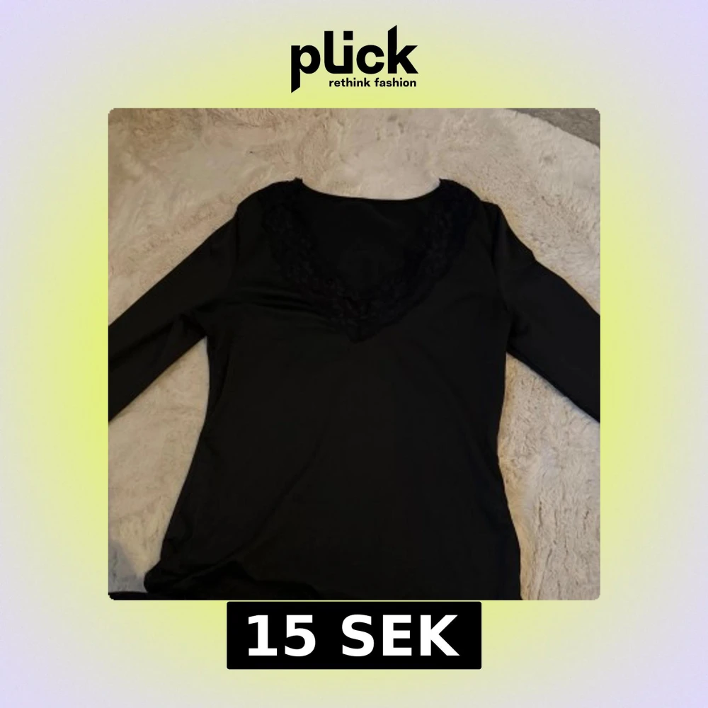 Snygg svart långärmad topp med v-ringad spetsdetalj. Perfekt för en elegant look. Passar bra till både jeans och kjol.