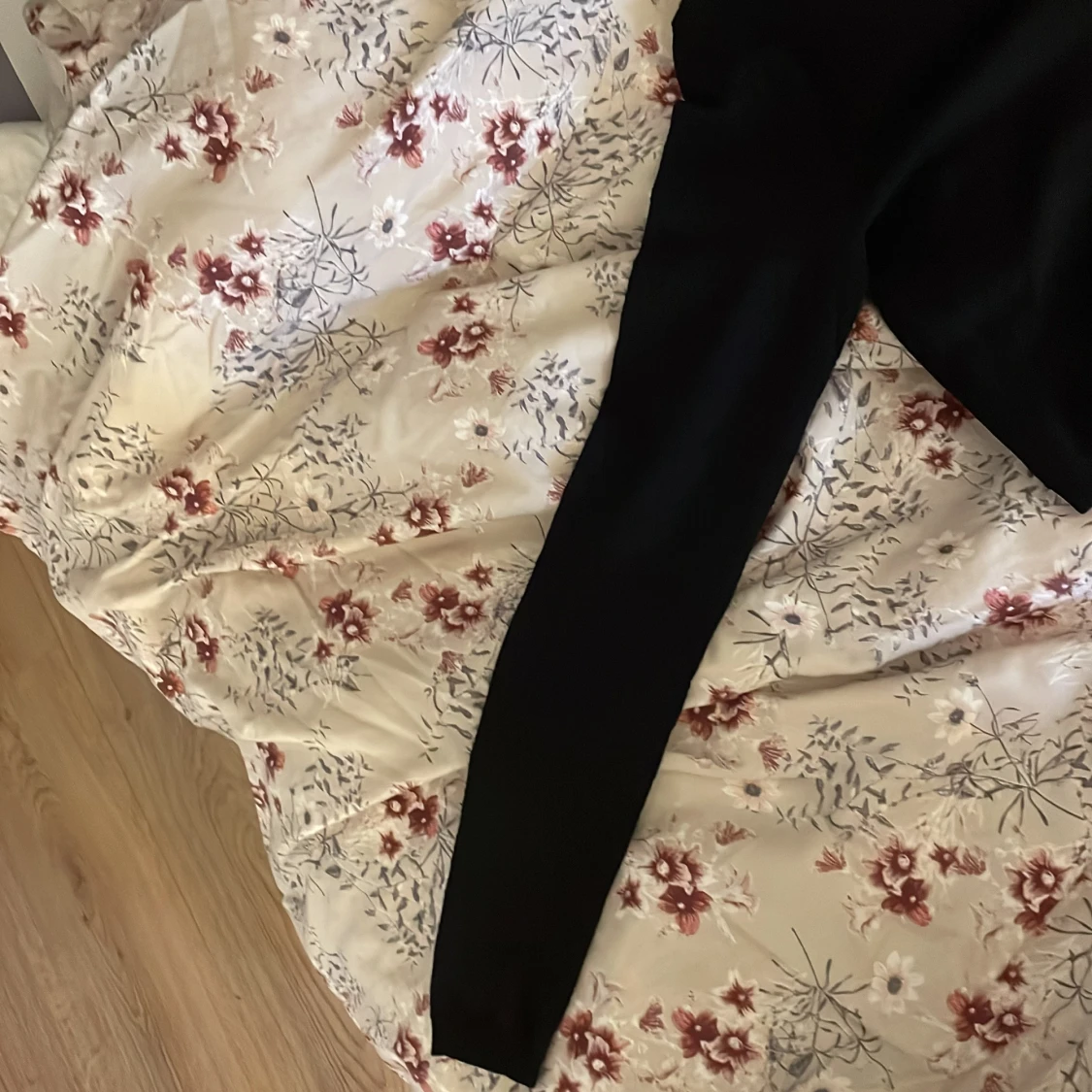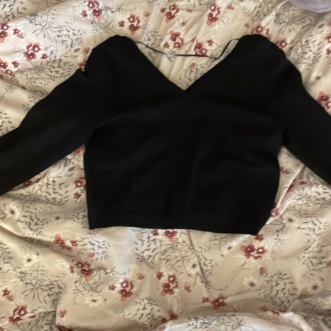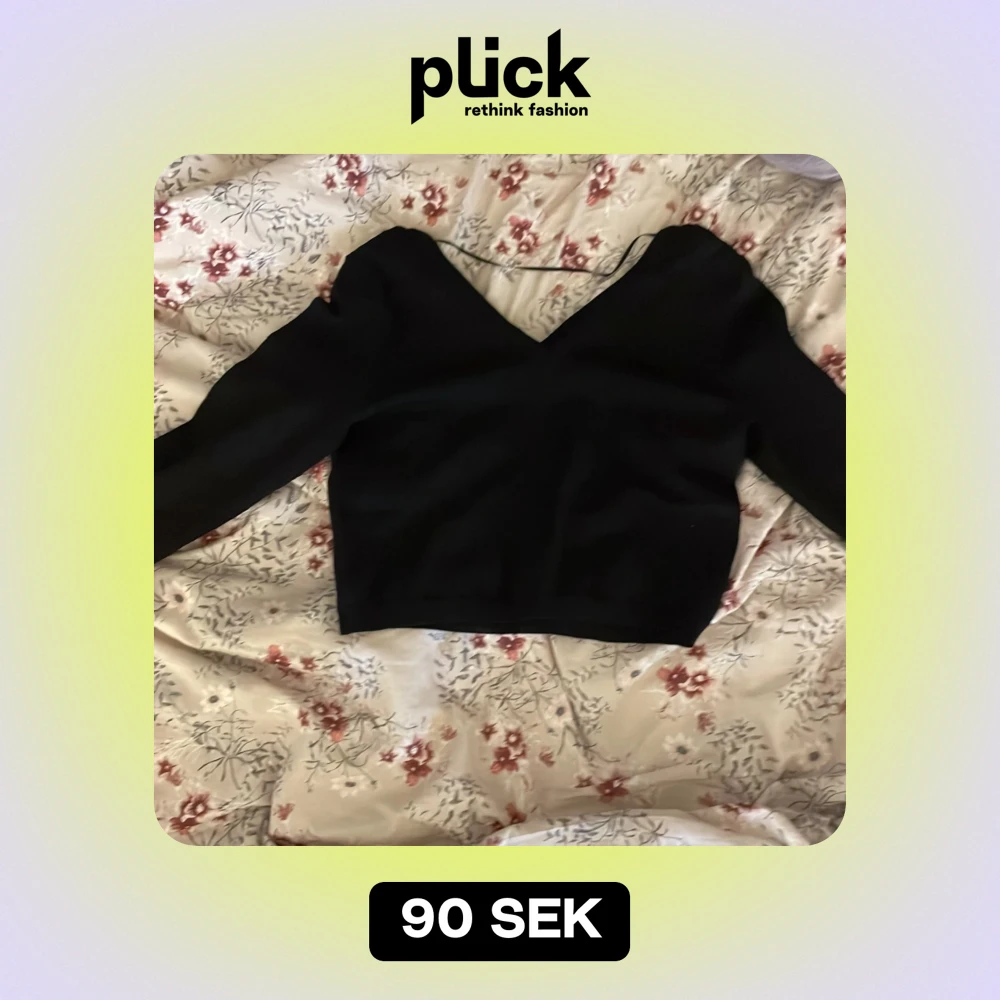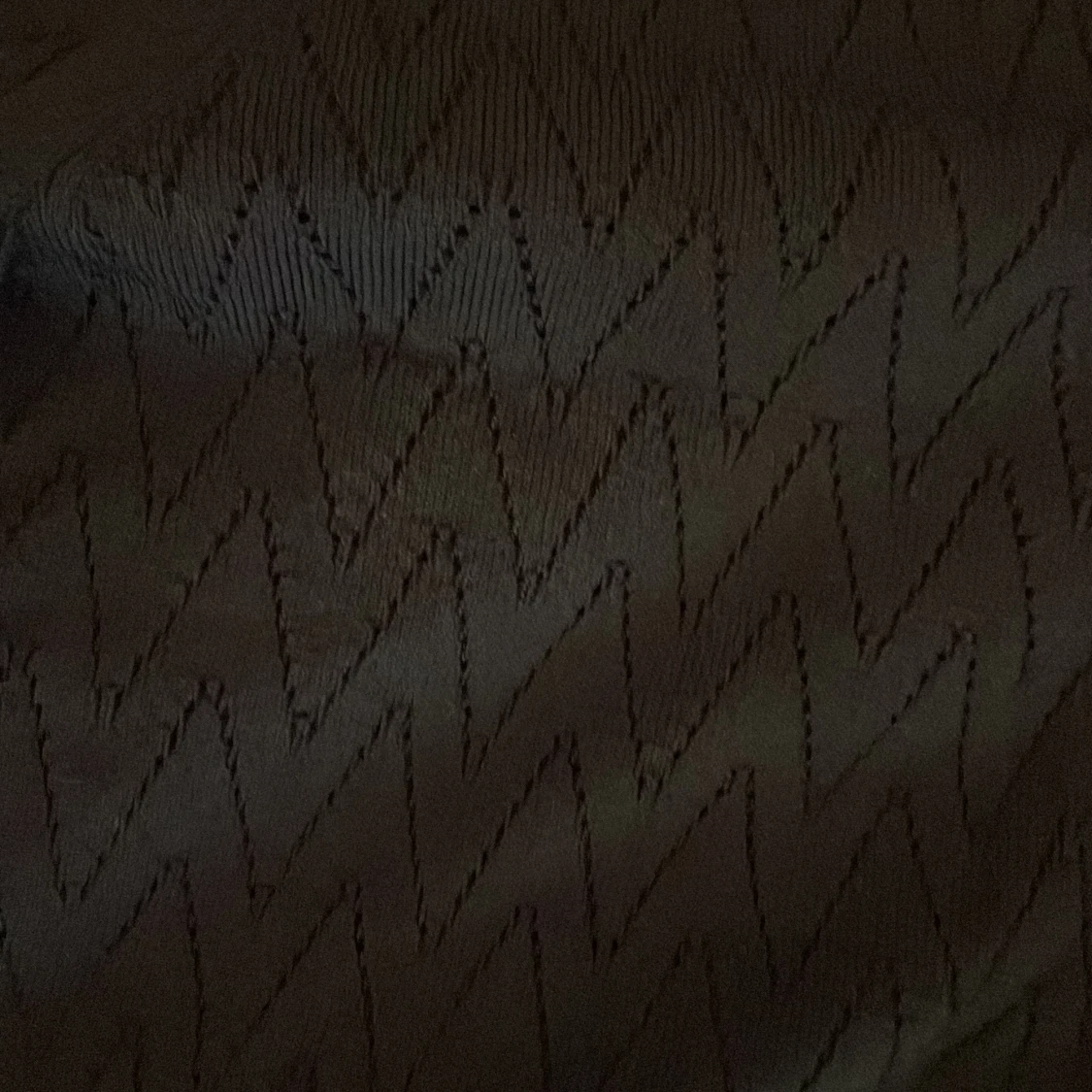 Säljer en stilren svart topp med v-ringning och långa ärmar. Den har ett subtilt sicksackmönster som ger en extra touch. Perfekt för både vardag och fest! 🖤