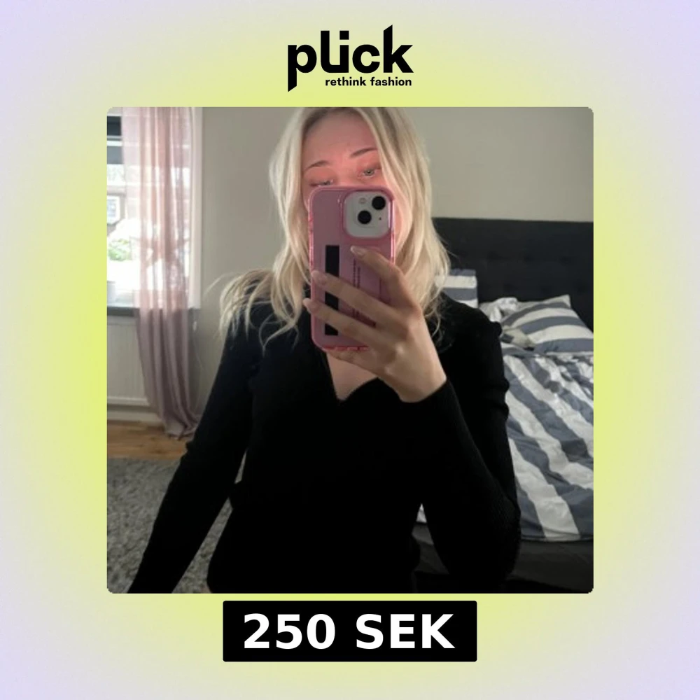 Säljer en stilren svart långärmad tröja med dragkedja. Den är ribbad och har en luva. Aldrig andvänd