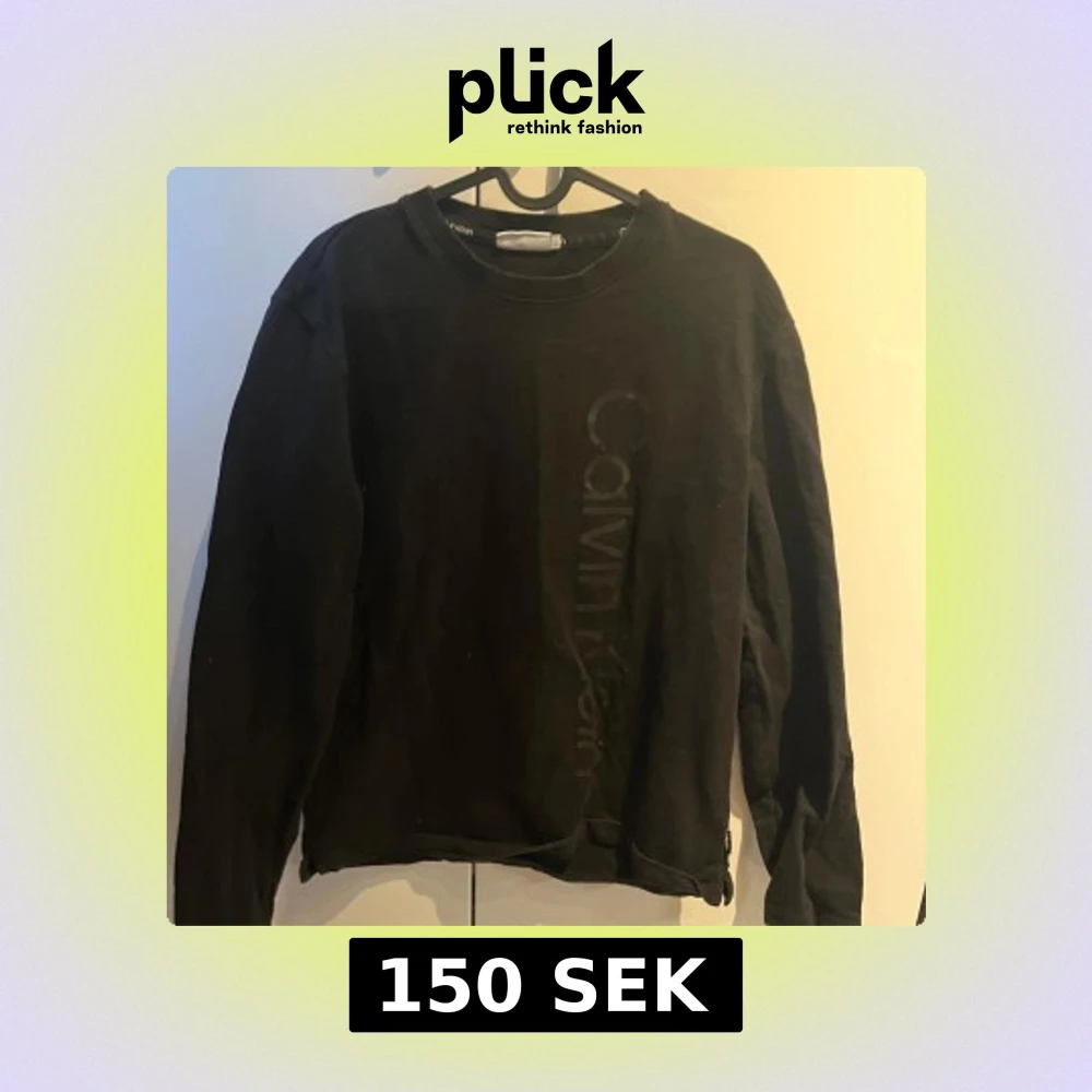 Säljer en stilren svart långärmad tröja från Calvin Klein med diskret logga på framsidan. Perfekt för en avslappnad look.