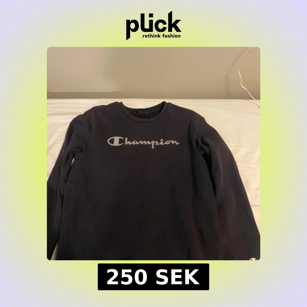 Säljer en svart långärmad tröja från Champion med deras ikoniska logga på bröstet. Perfekt för en avslappnad stil och bekväm passform. Passar bra till både jeans och träningsbyxor.