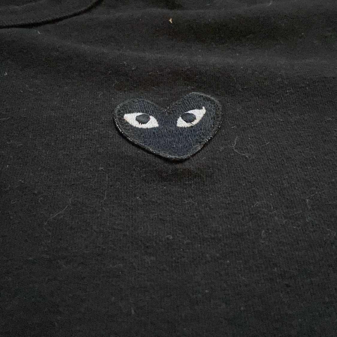 Säljer en svart långärmad tröja från Comme des Garçons Play med det ikoniska hjärta med ögon broderat på bröstet. Tröjan har en klassisk passform och är gjord i mjuk bomull. Perfekt för en stilren och enkel look. Storlek L men passar mer M